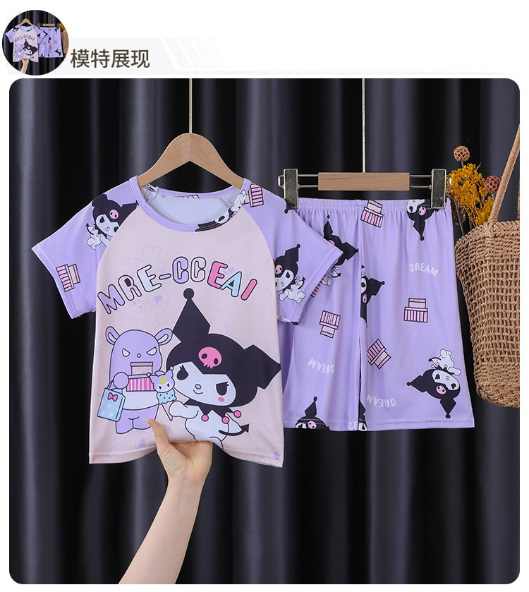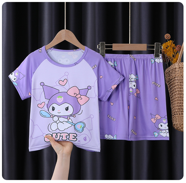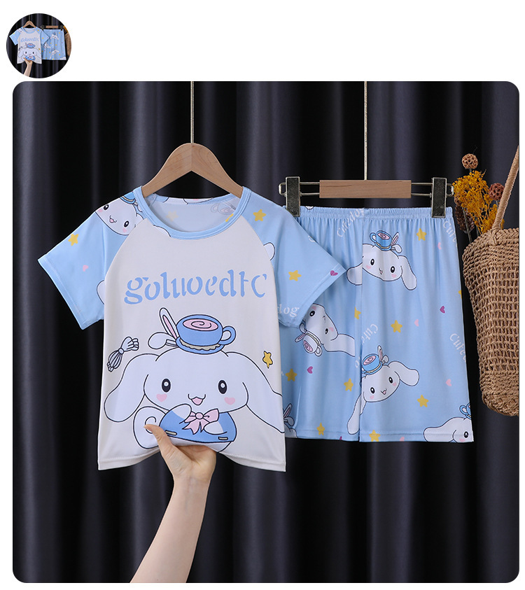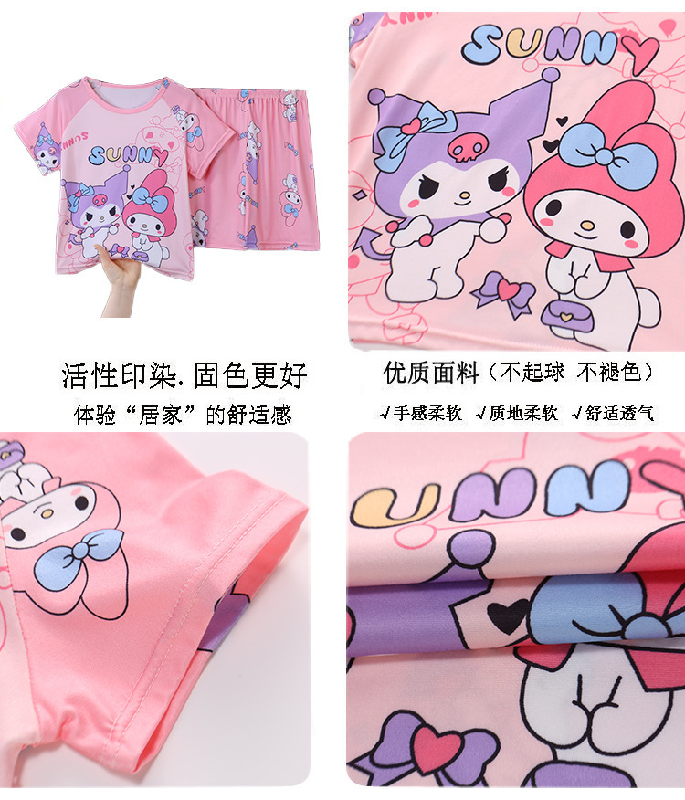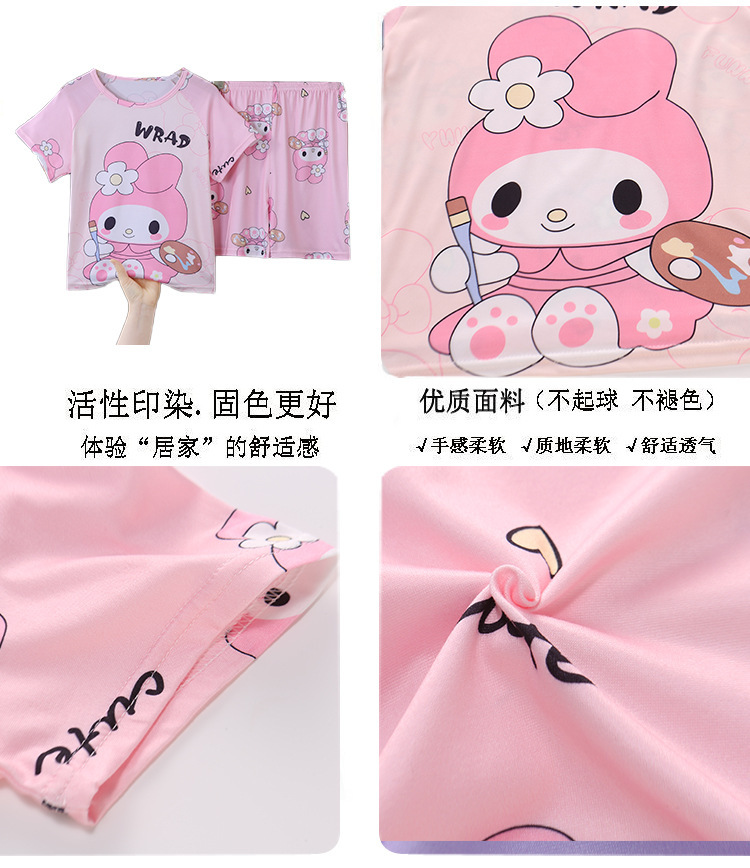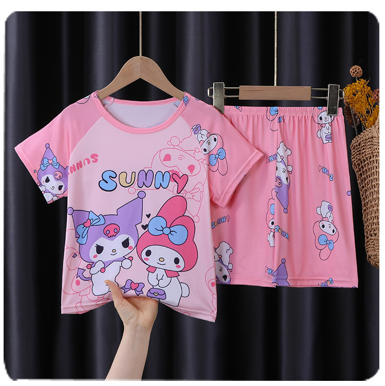 여름 폭발 어린이 잠옷 둥근 목 짧은 소매 얇은 만화 세트 소년 소녀 아이 아기 홈 옷 세트