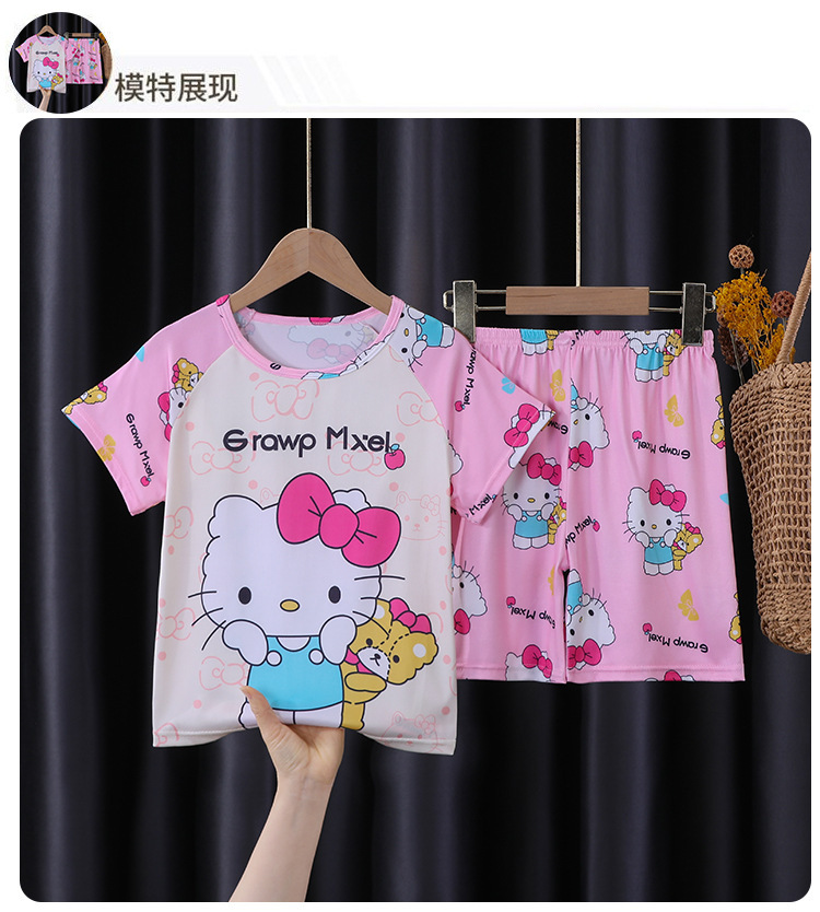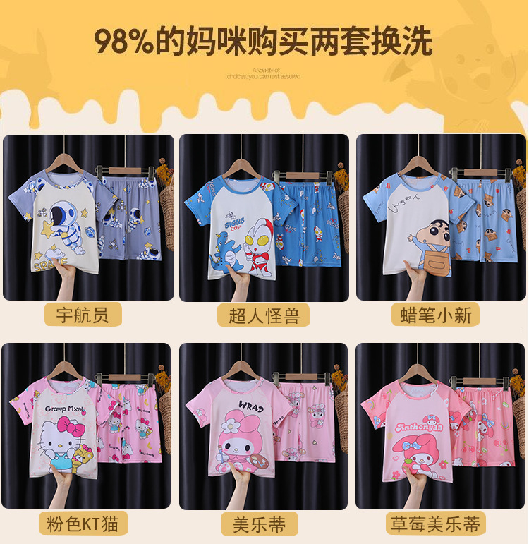 여름 폭발 어린이 잠옷 둥근 목 짧은 소매 얇은 만화 세트 소년 소녀 아이 아기 홈 옷 세트스토어 가기