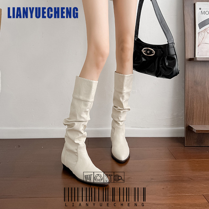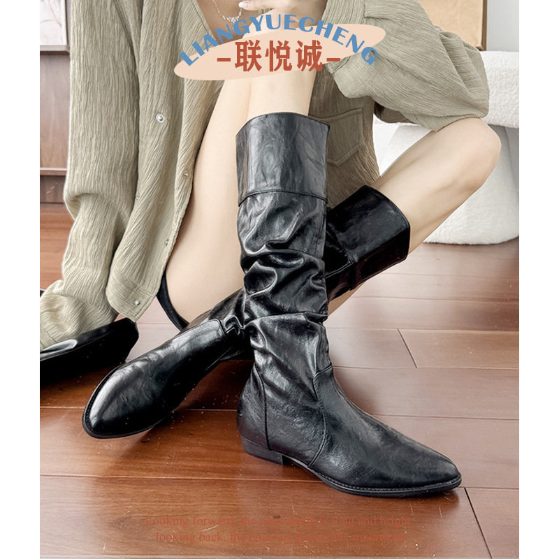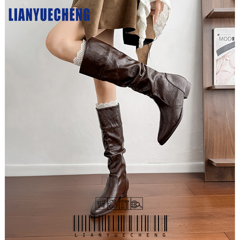 주름 스퀘어 헤드 필 부츠 영국 스타일 나이트 부츠 두꺼운 낮은 힐 부츠하지만 무릎 패션 가을 싱글 부츠 작은 모양 얇은스토어 가기