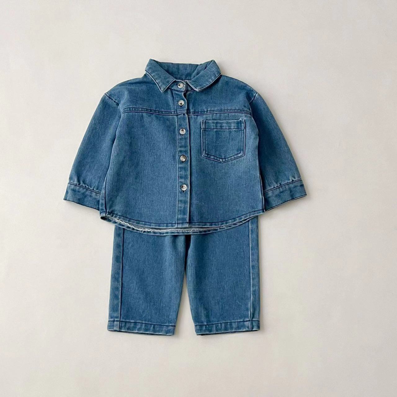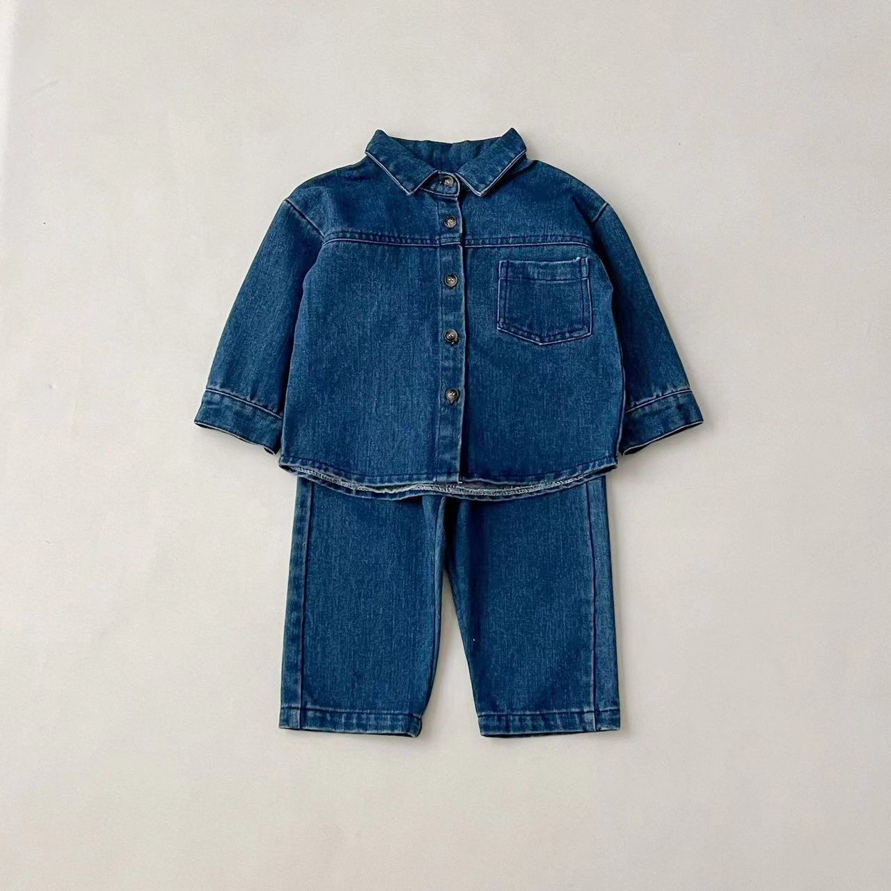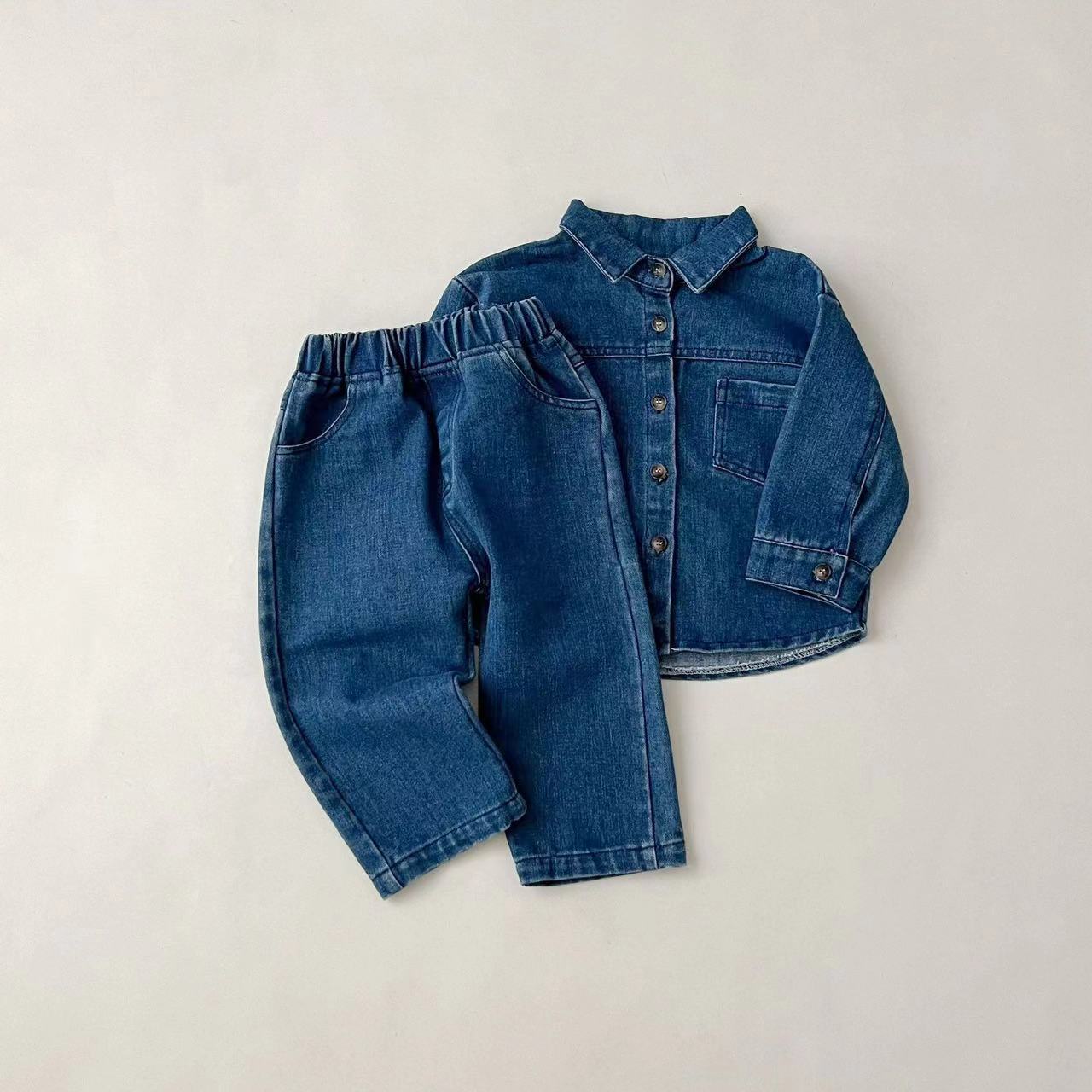 남아 정장 한국 아동복 가을 겨울 한국 스타일 데님 정장 남녀 공용 레트로 상의 데님복 투피스 세트스토어 가기