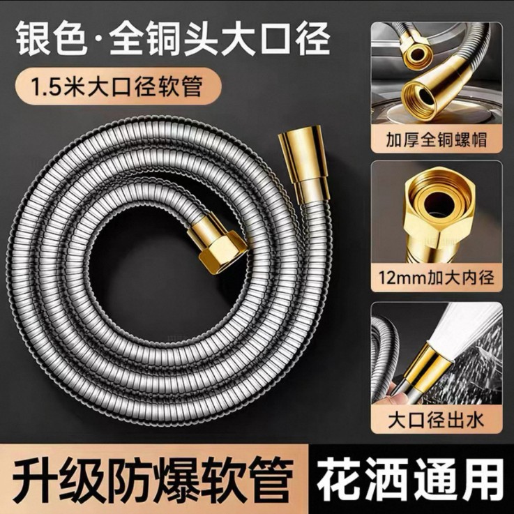 • 1.5m 실버 [정밀 구리 인터페이스★암호화 강화 스테인리스 호스]