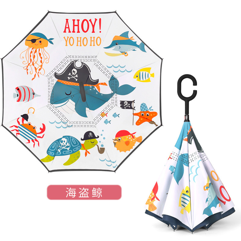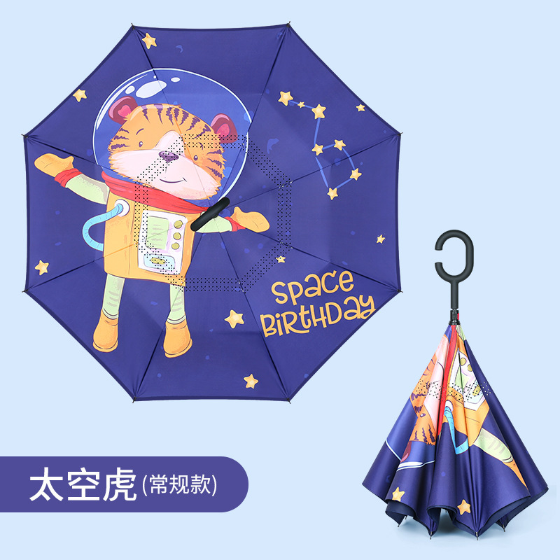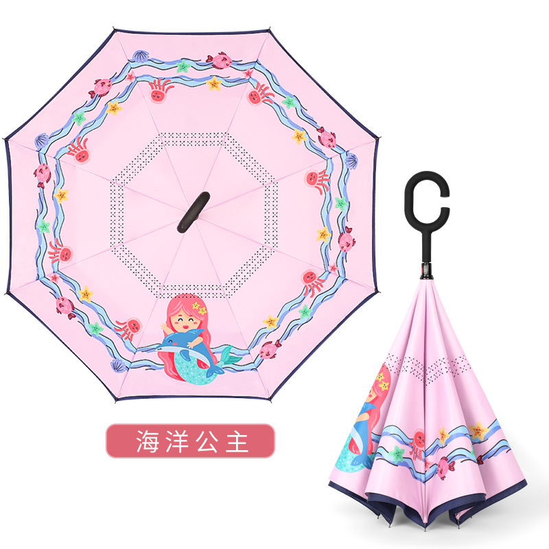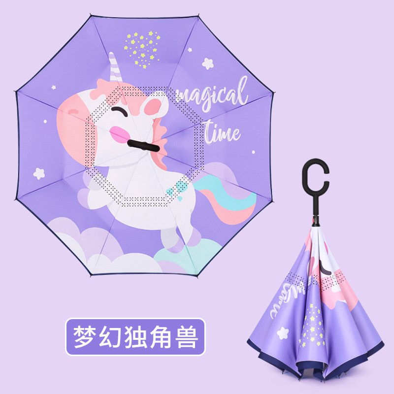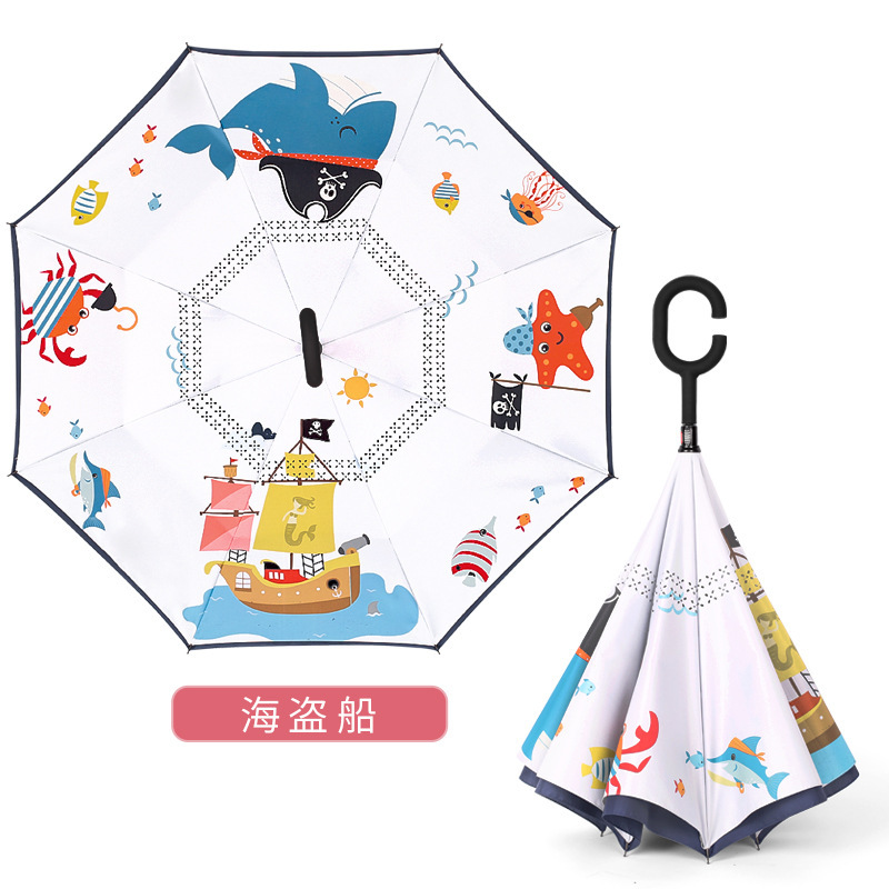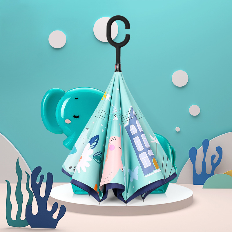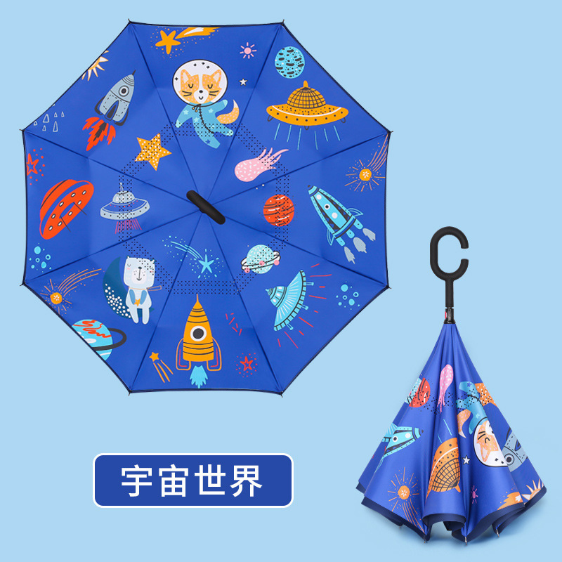 소년 소녀를위한 어린이 역 우산 우산 휴대용 핸즈리스 만화 긴 손잡이 우산 귀여운 초등학생 더블 레이어 우산 자외선 차단제스토어 가기