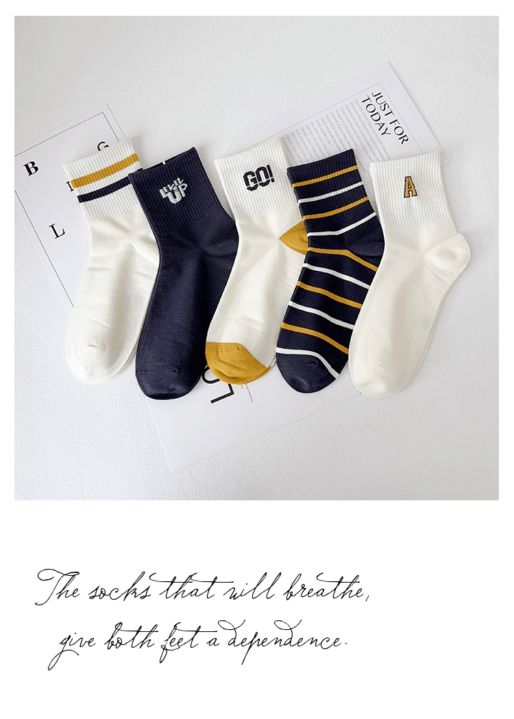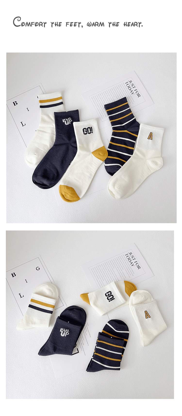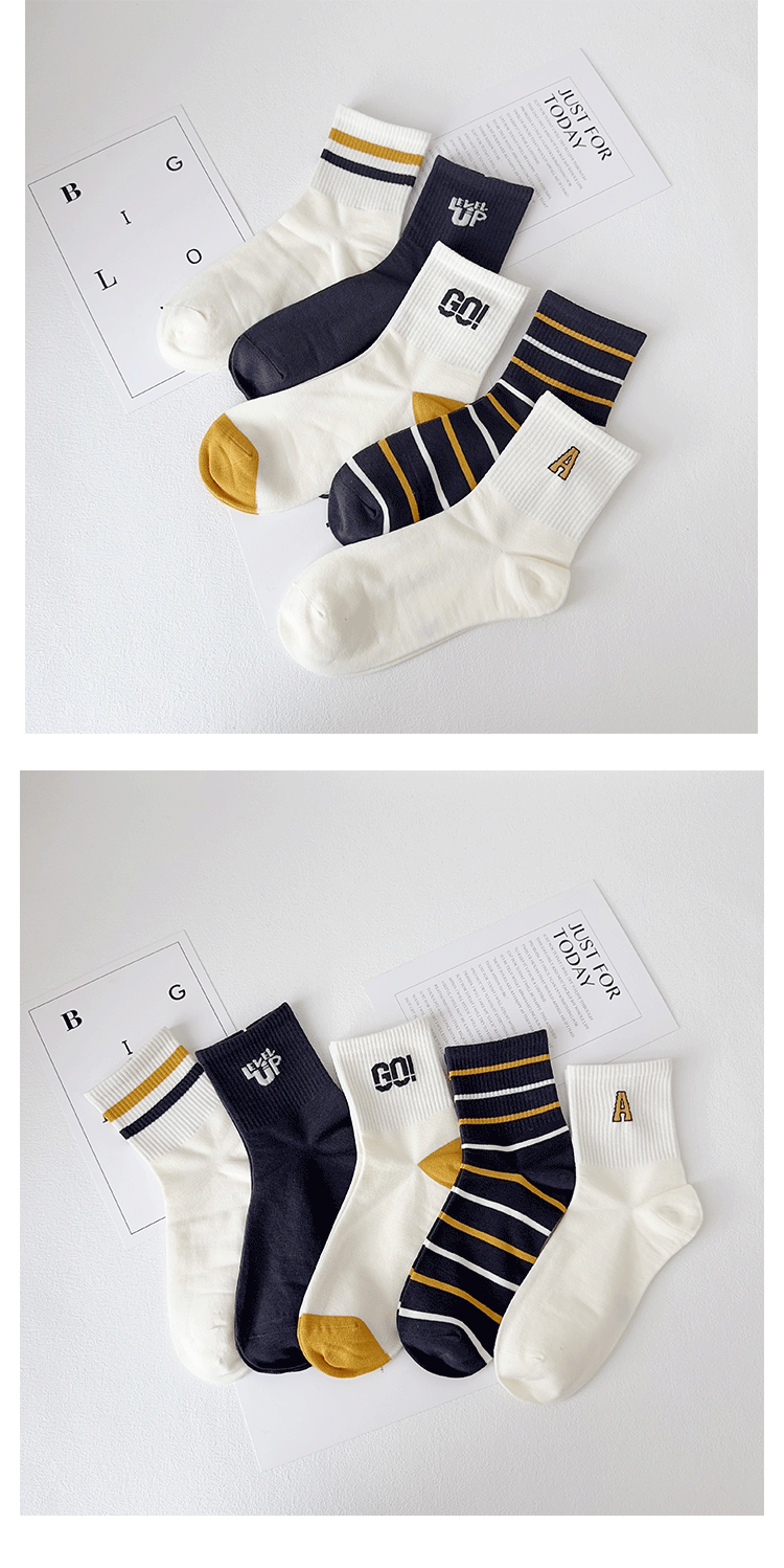 Yi Shuang Pair 주니어 양말 가을과 겨울 새로운 트렌디 브랜드 편지 중간 튜브 양말 빗 코튼 큰 어린이 유행 양말-무료 양말 학생 양말