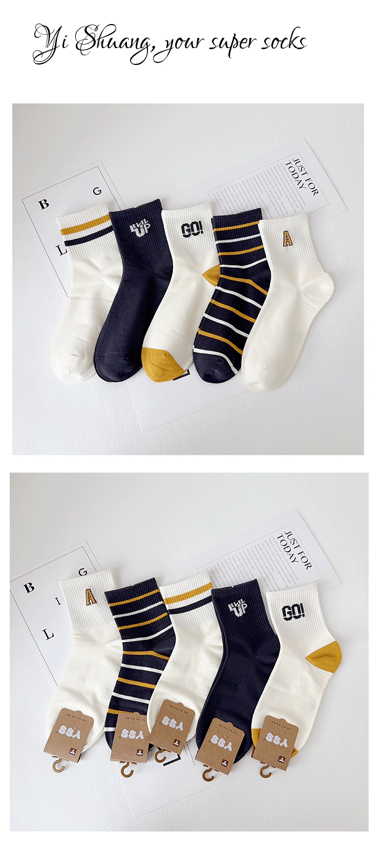 Yi Shuang Pair 주니어 양말 가을과 겨울 새로운 트렌디 브랜드 편지 중간 튜브 양말 빗 코튼 큰 어린이 유행 양말-무료 양말 학생 양말스토어 가기