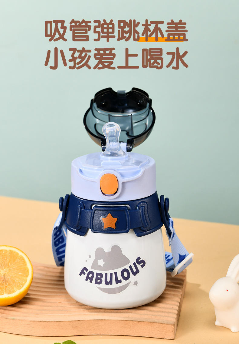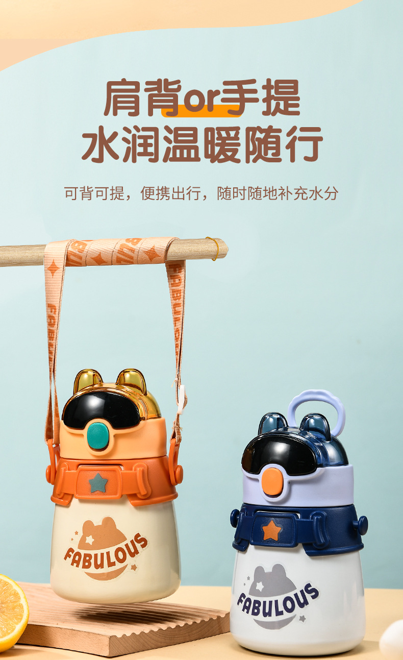 무료 배송 만화 304 스테인레스 스틸 높은 색상 가치 아기 밀짚 보온병 소년과 소녀 휴대용 스트랩 학교 주전자