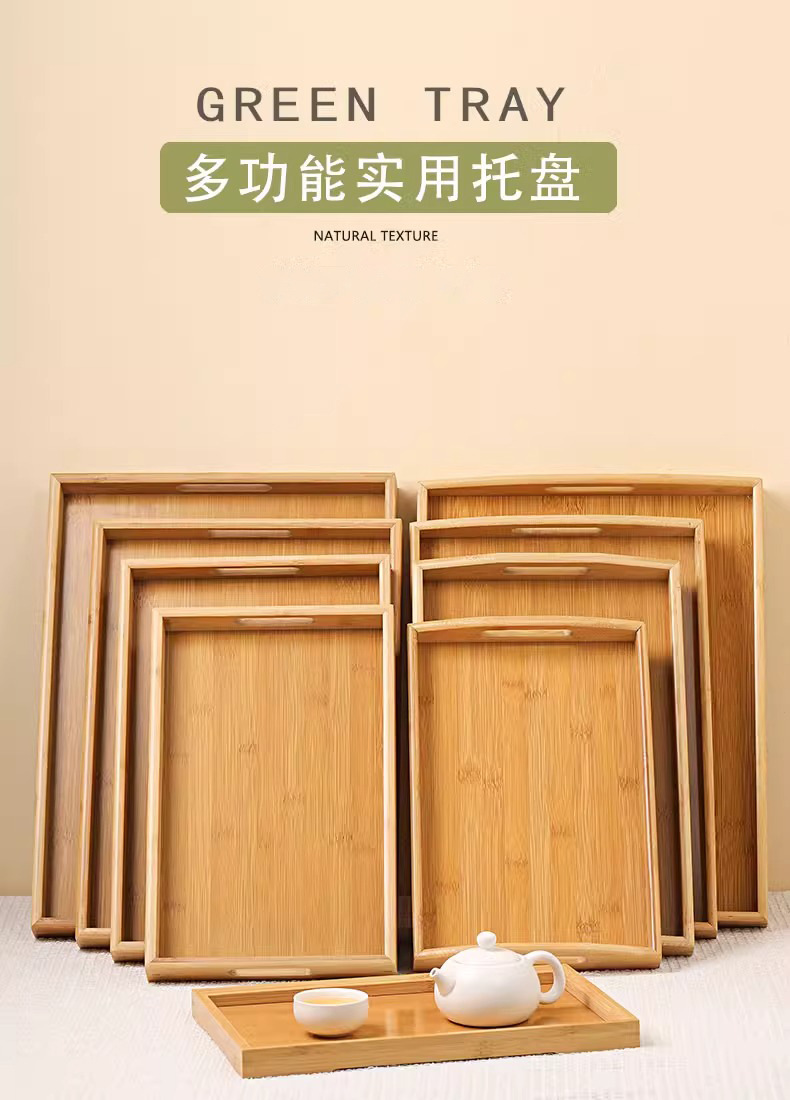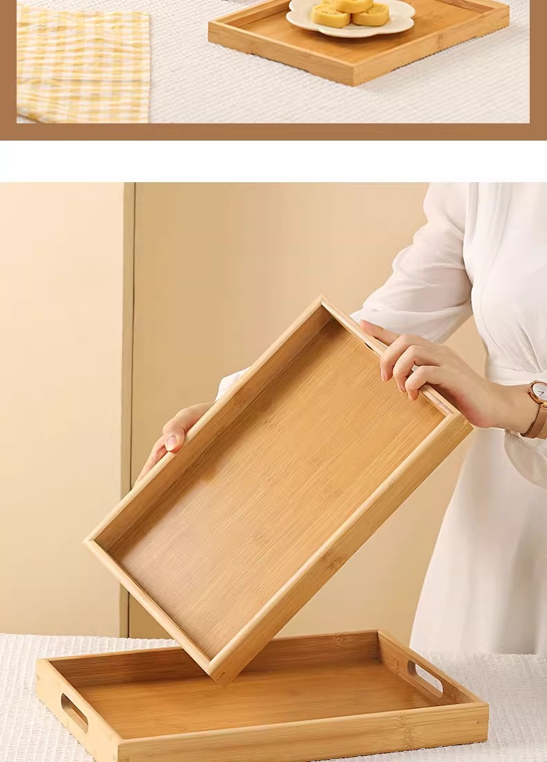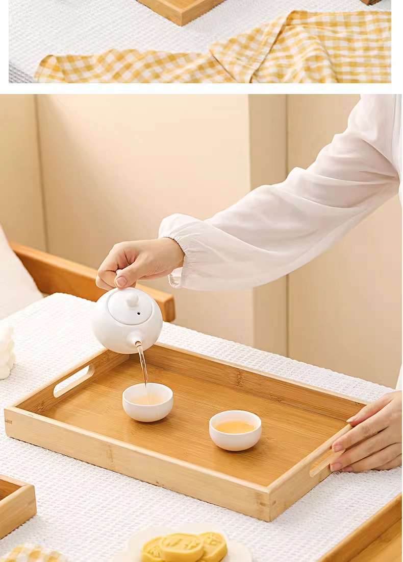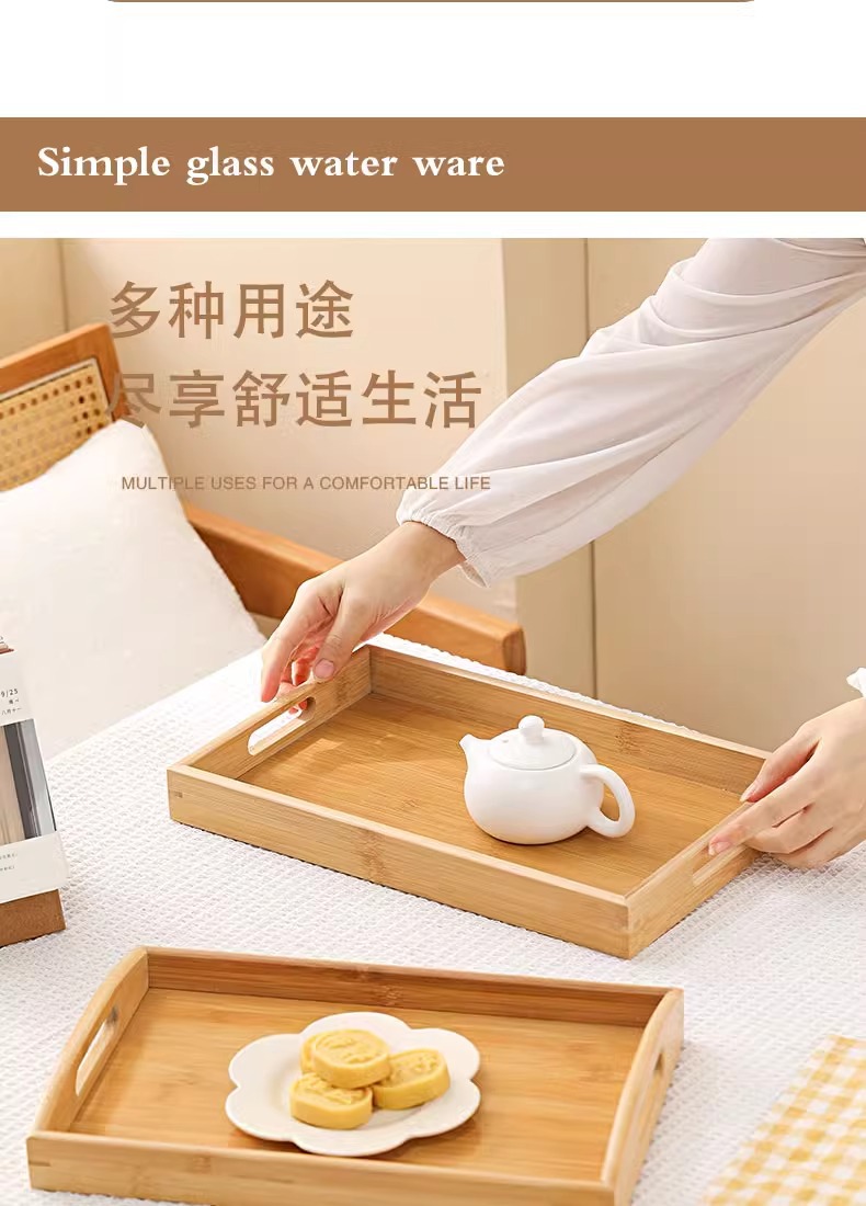 대나무와 나무 쟁반 직사각형 차 쟁반 가정용 물 컵 쟁반 단단한 나무 달 끝 만찬 쟁반 상업 바베큐 쟁반