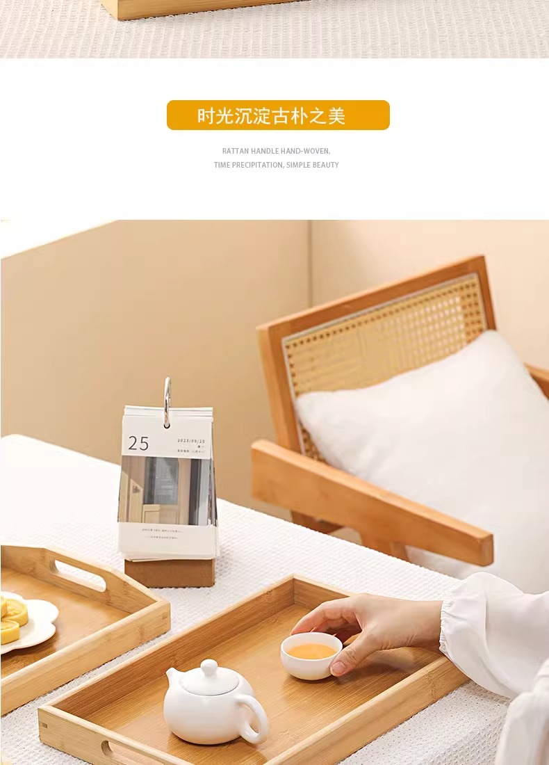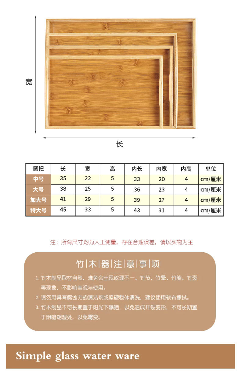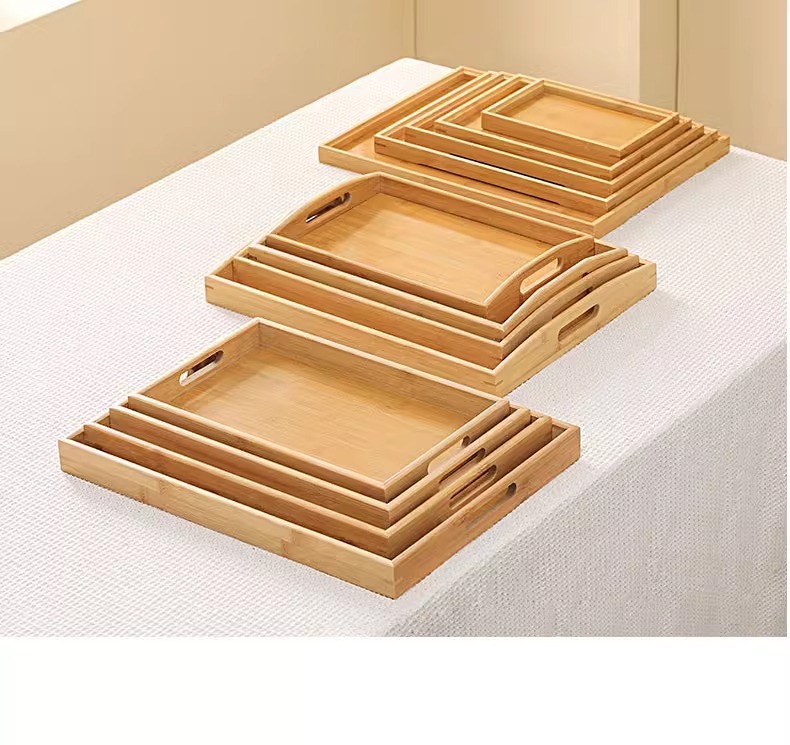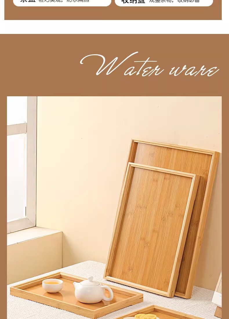 대나무와 나무 쟁반 직사각형 차 쟁반 가정용 물 컵 쟁반 단단한 나무 달 끝 만찬 쟁반 상업 바베큐 쟁반