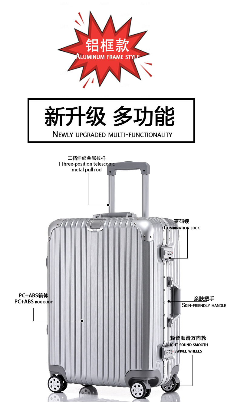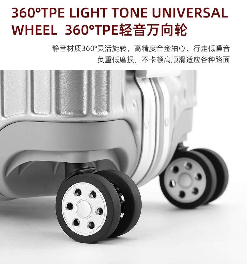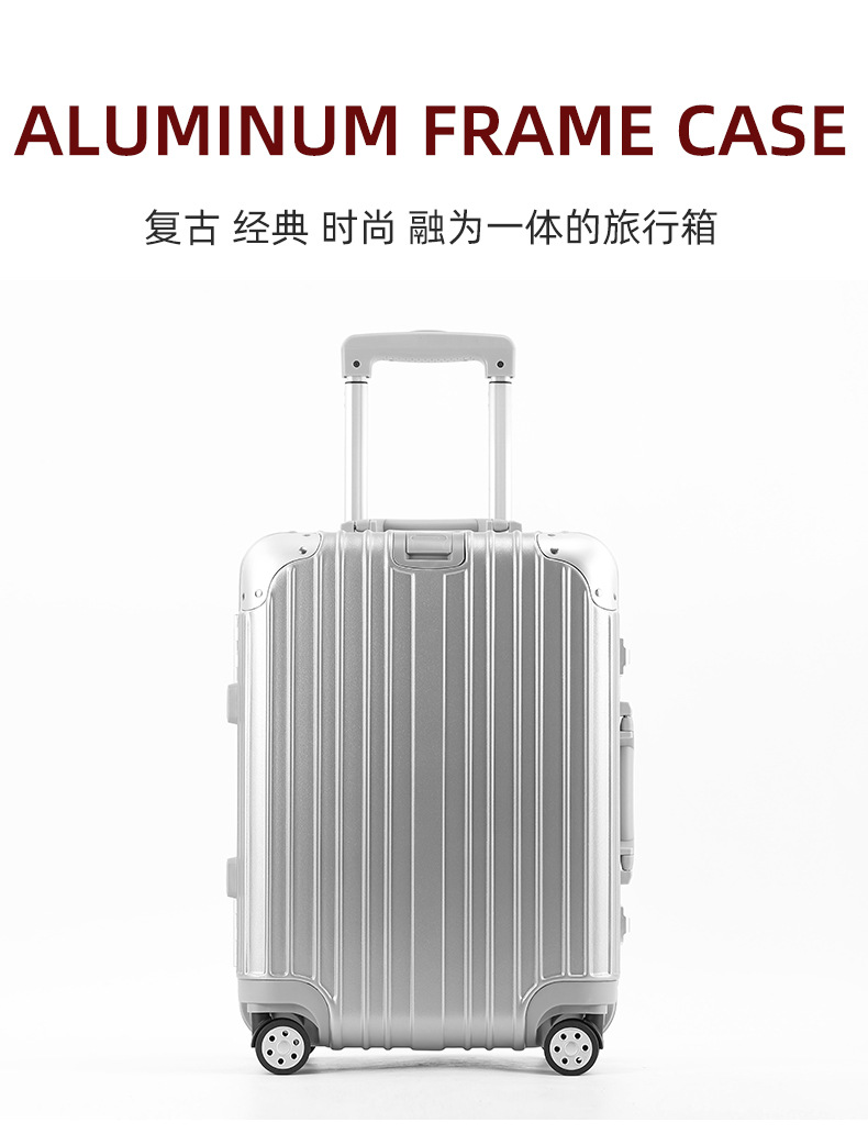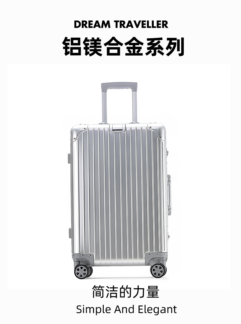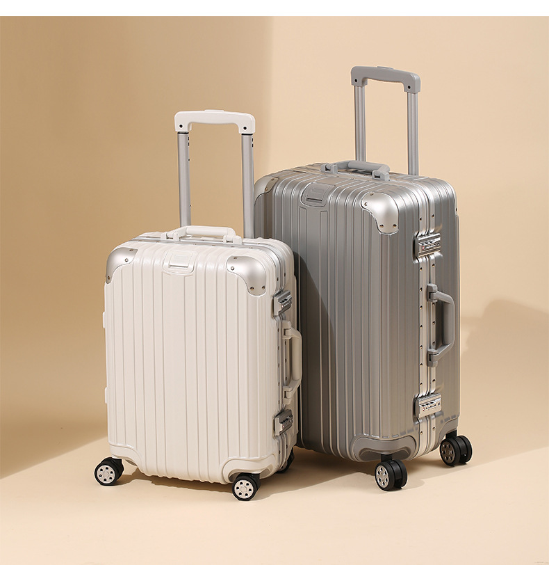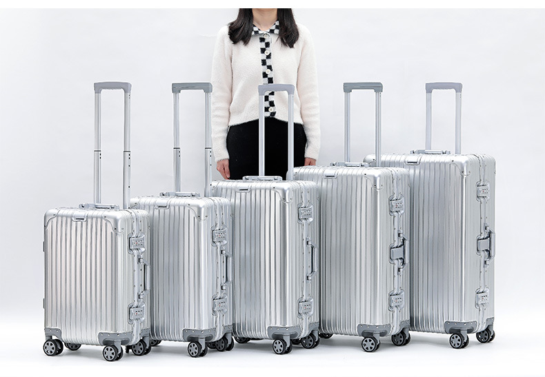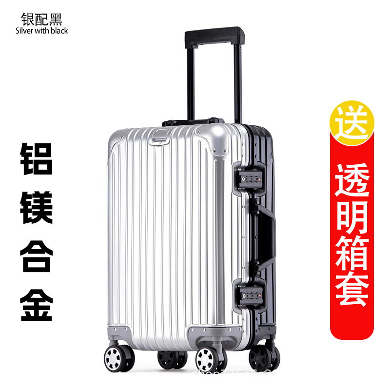 모든 알루미늄-마그네슘 합금 암호 상자 여성 트롤리 케이스 남성용 유니버설 휠 가방 20 인치 수하물 탑승 상자 알루미늄 프레임 상자