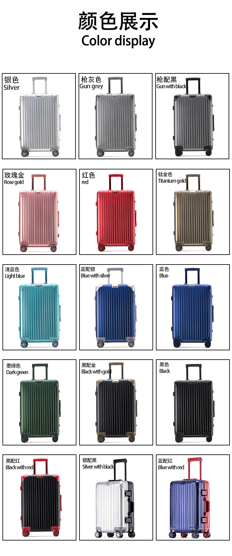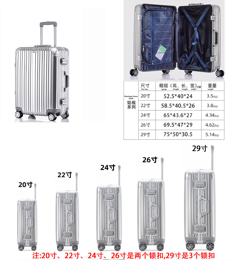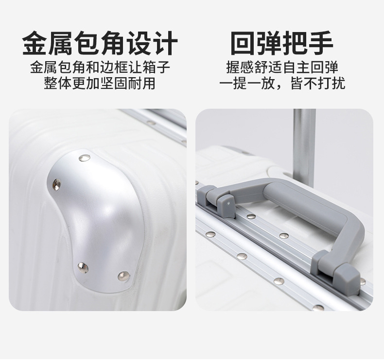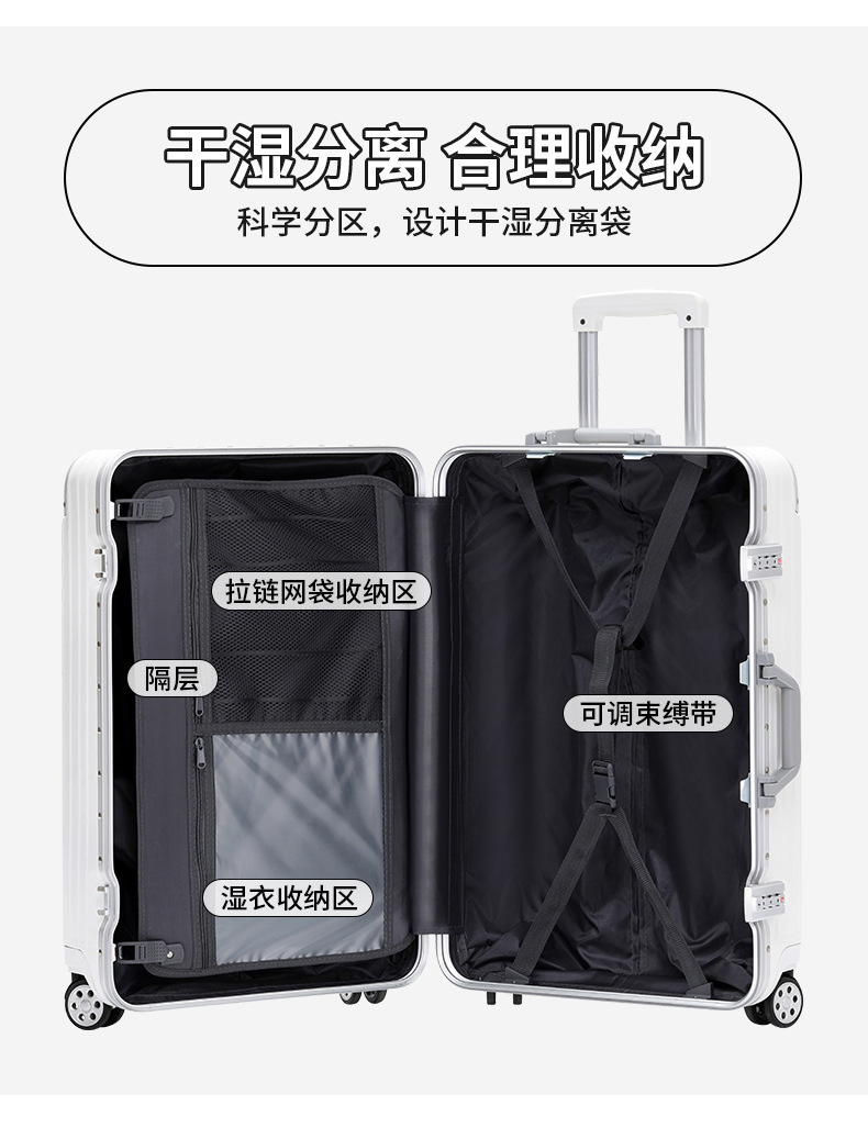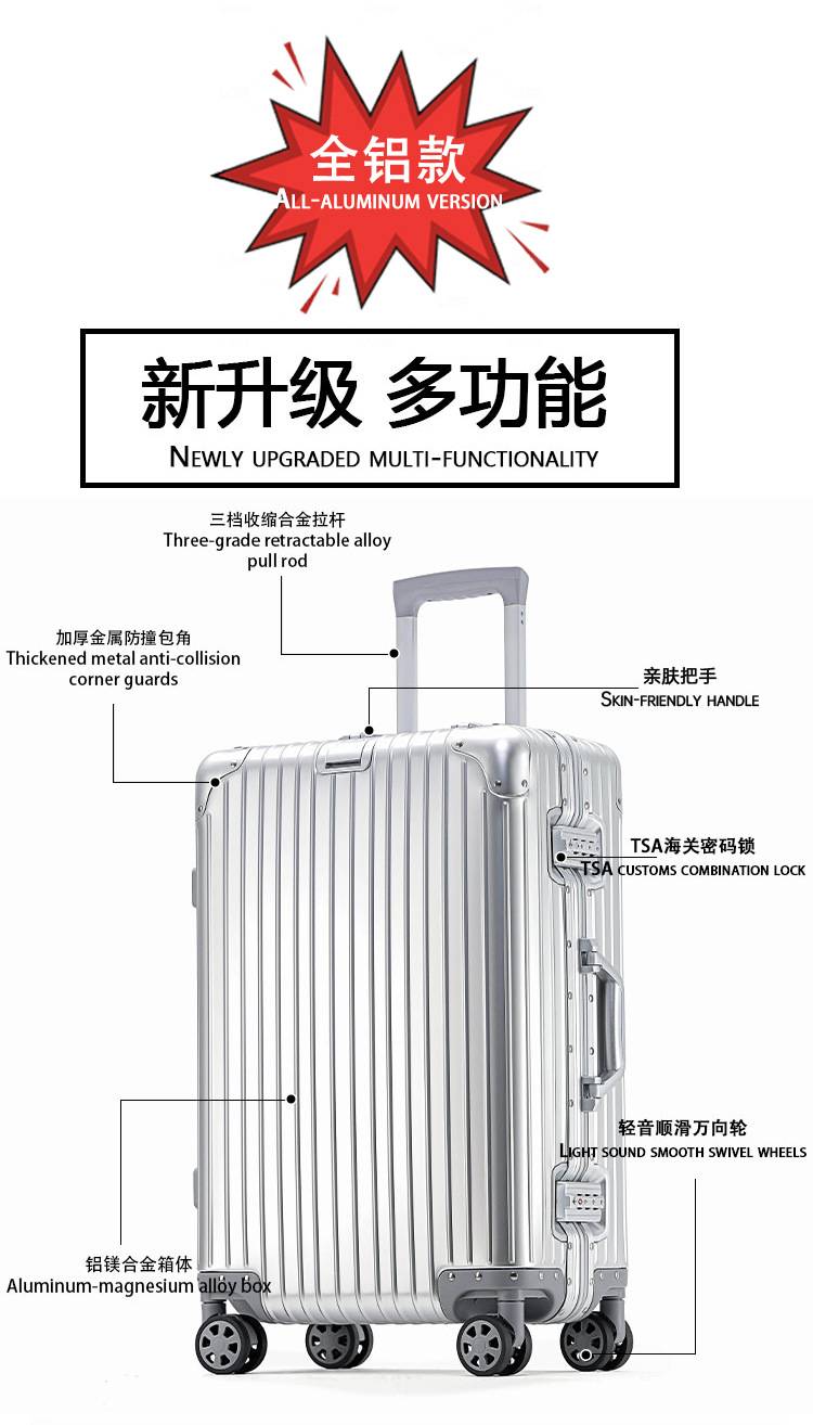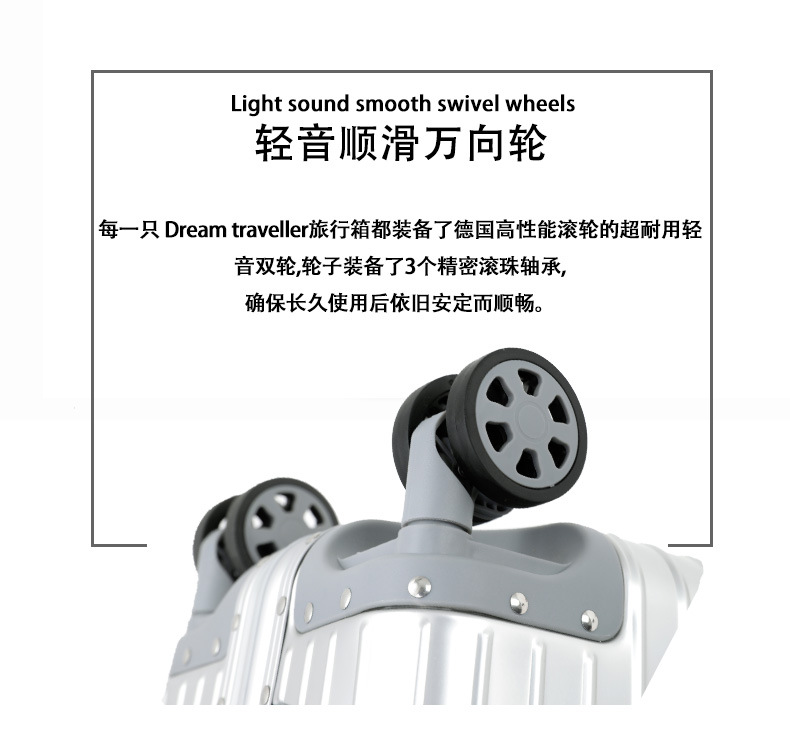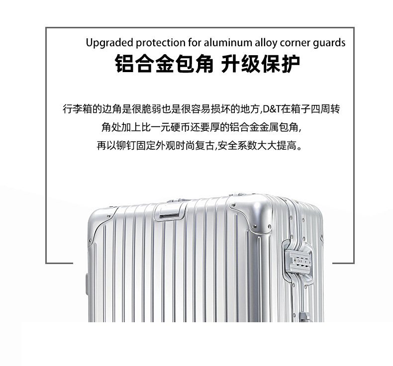 모든 알루미늄-마그네슘 합금 암호 상자 여성 트롤리 케이스 남성용 유니버설 휠 가방 20 인치 수하물 탑승 상자 알루미늄 프레임 상자