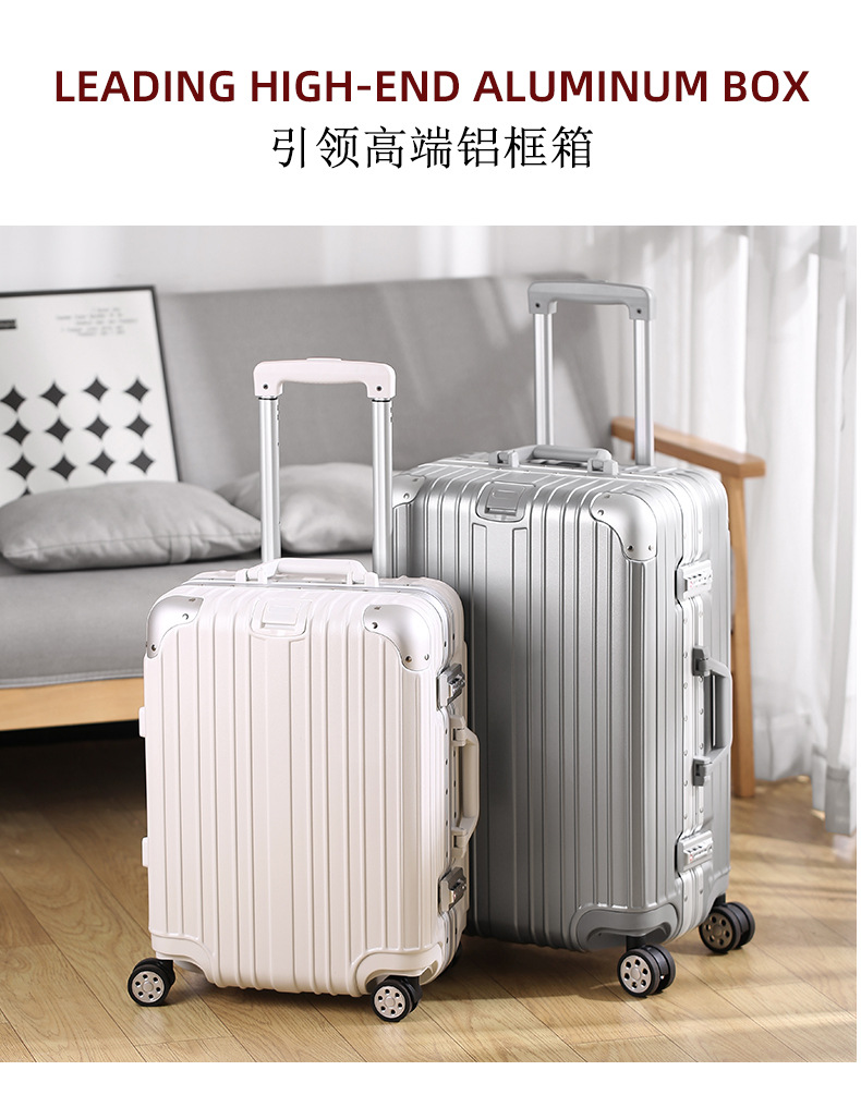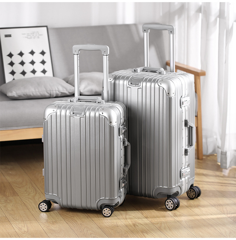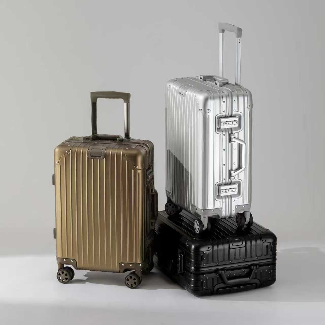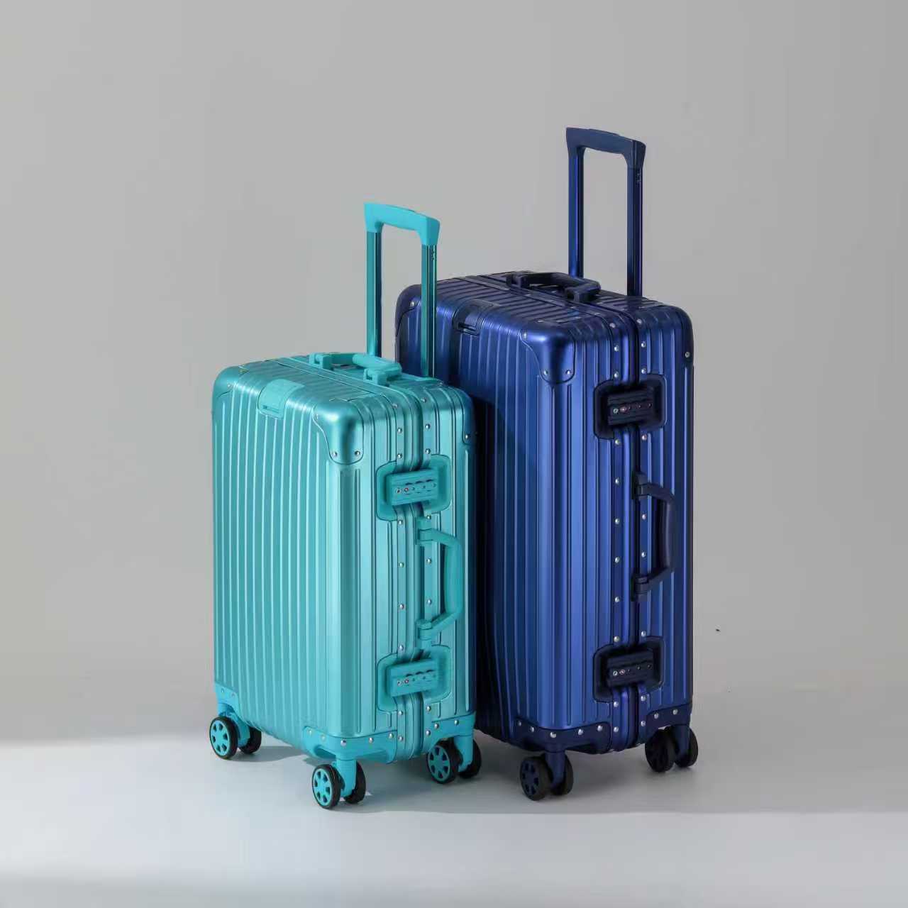 모든 알루미늄-마그네슘 합금 암호 상자 여성 트롤리 케이스 남성용 유니버설 휠 가방 20 인치 수하물 탑승 상자 알루미늄 프레임 상자스토어 가기