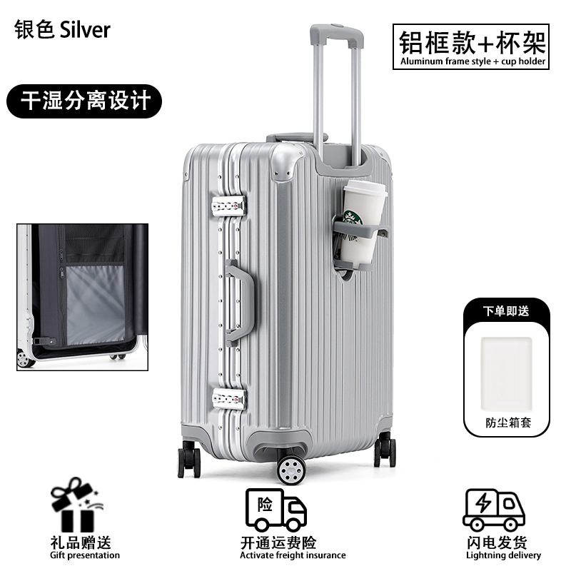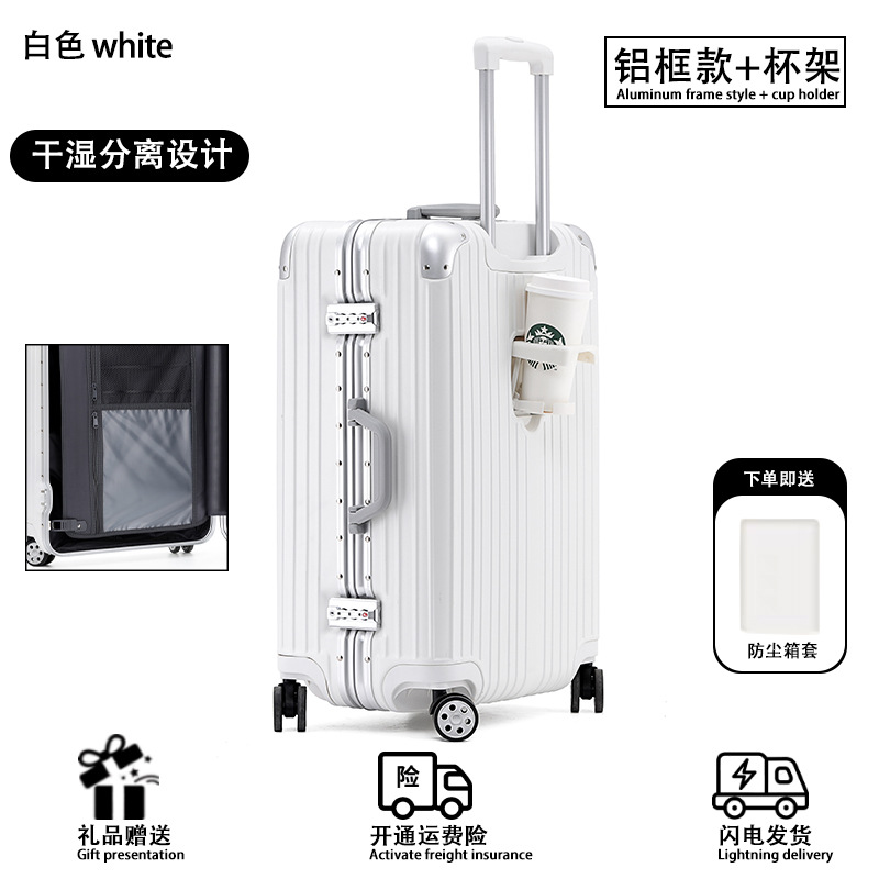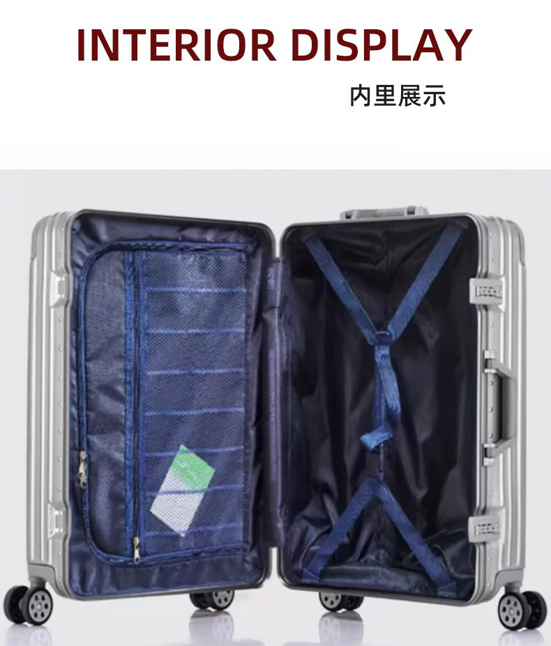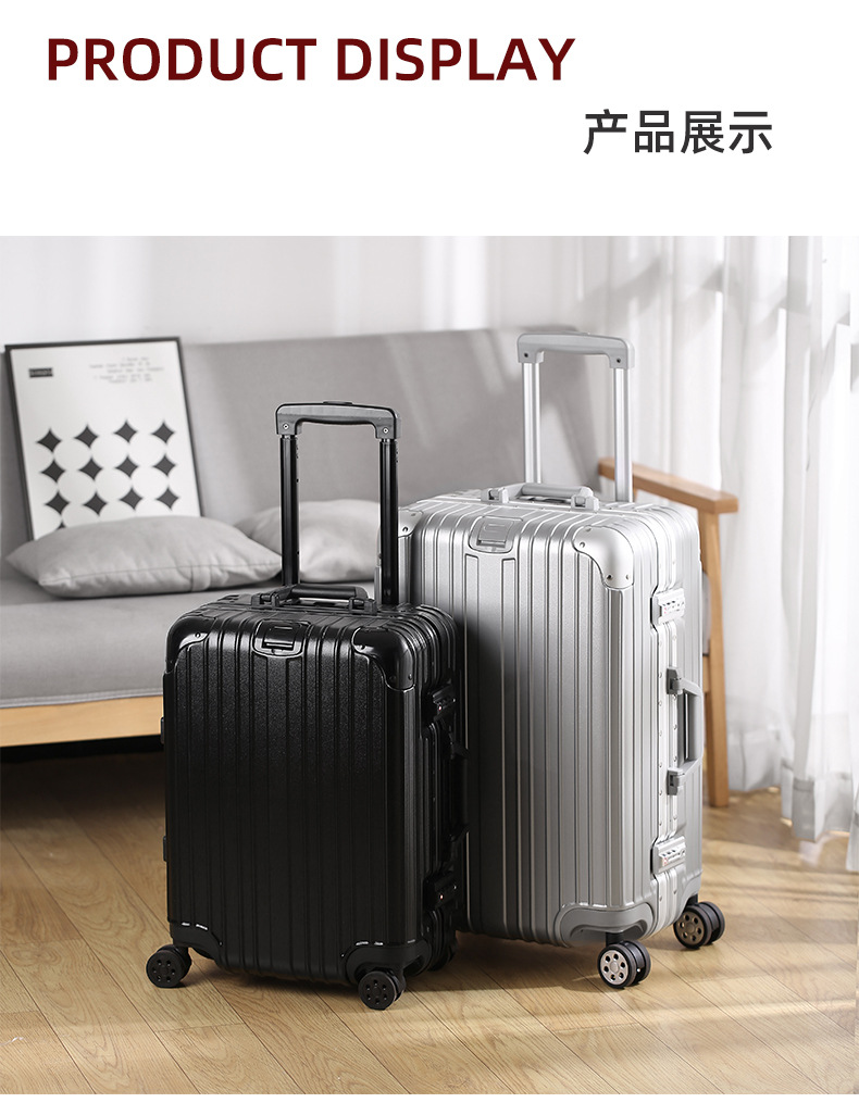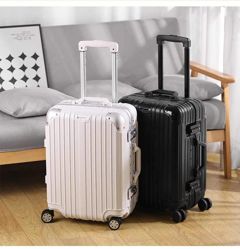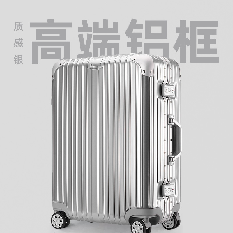 모든 알루미늄-마그네슘 합금 암호 상자 여성 트롤리 케이스 남성용 유니버설 휠 가방 20 인치 수하물 탑승 상자 알루미늄 프레임 상자스토어 가기