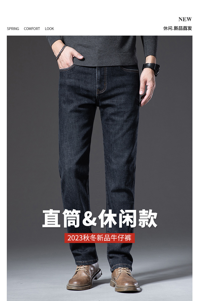 양모 가을과 겨울 청바지 남성용 두꺼운 2024 면 스트레이트 튜브 착용 방지 비즈니스 캐주얼 트렌디 긴 바지스토어 가기