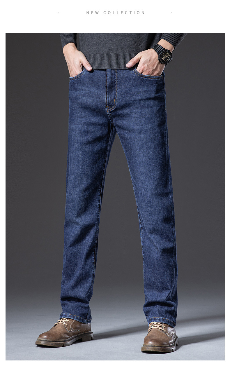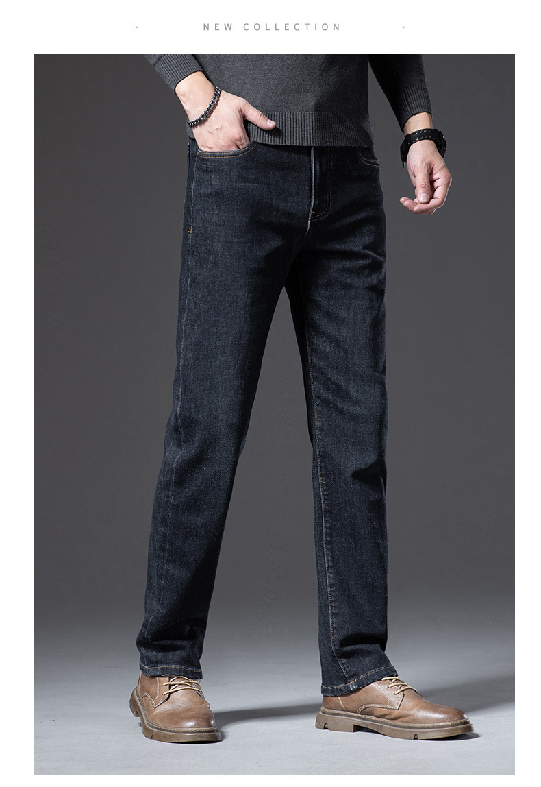 양모 가을과 겨울 청바지 남성용 두꺼운 2024 면 스트레이트 튜브 착용 방지 비즈니스 캐주얼 트렌디 긴 바지