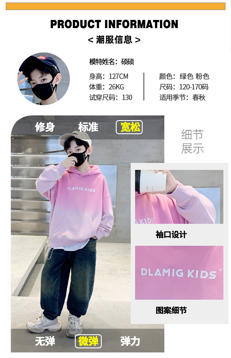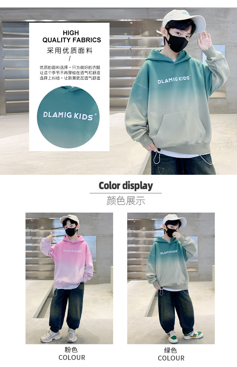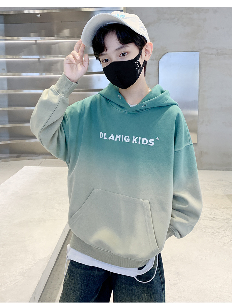 어린이 의류 소년 후드 스웨트 셔츠 가을 2024 새로운 패션 브랜드 중 큰 어린이의 봄과 가을 소년 잘 생긴 그라디언트 탑스토어 가기