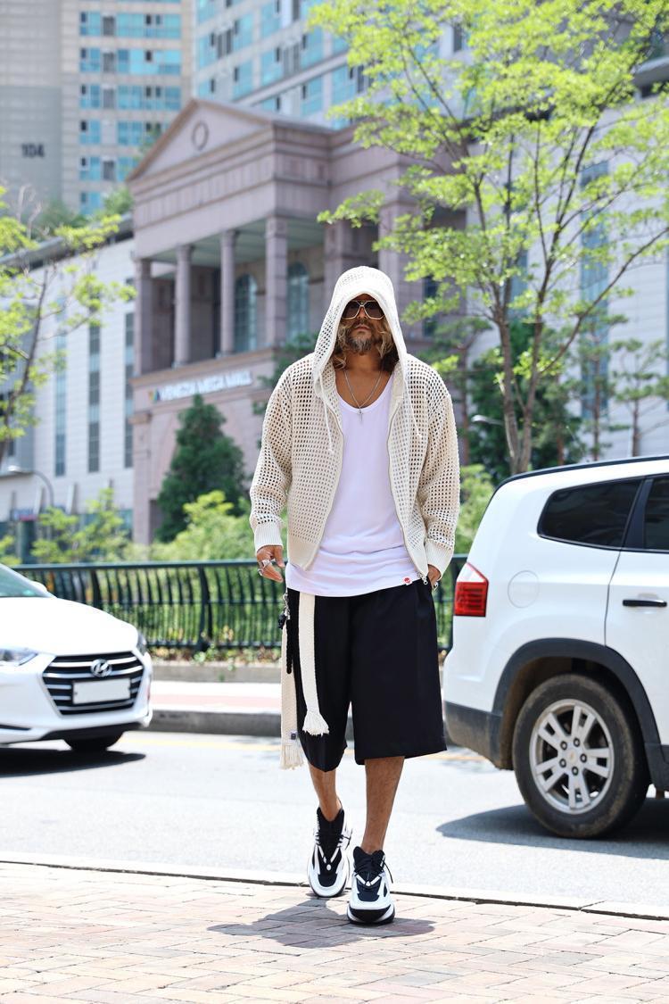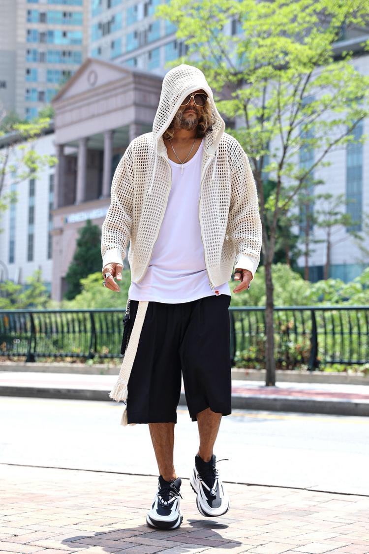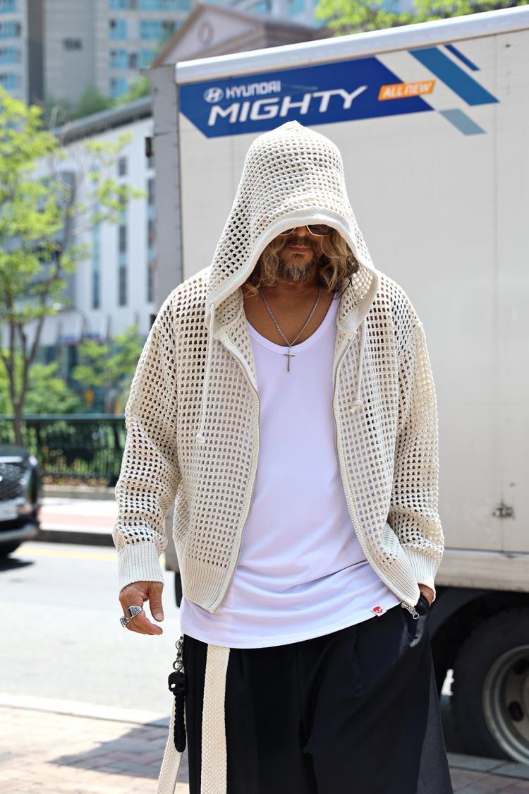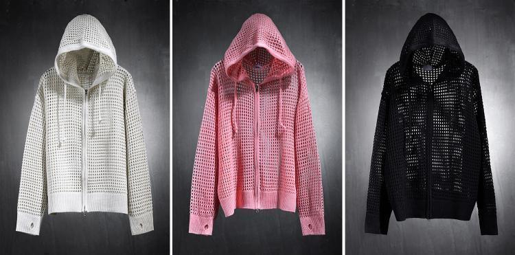 유럽 중공 후드 니트웨어 남성용 고급 메쉬 긴팔 태양 보호 의류 메쉬 울 스웨터 카디건 재킷스토어 가기