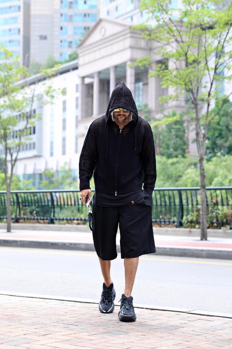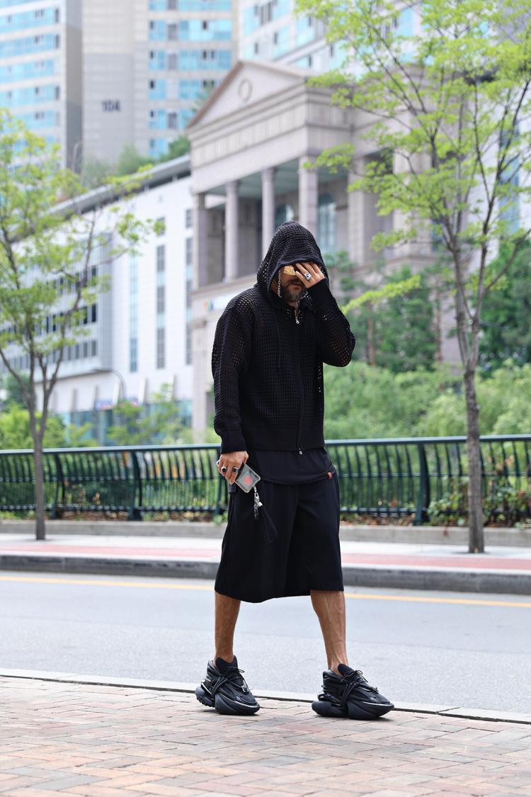 • 중공 메쉬 니트 가디건 블랙