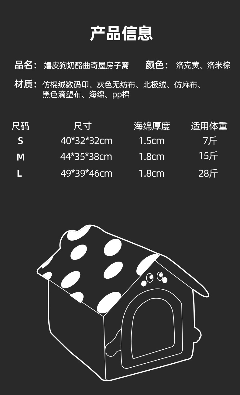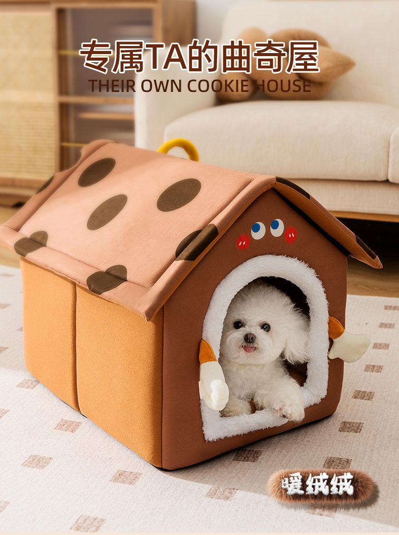가을과 겨울 개 중소 개 치즈 쿠키 하우스 개집 고양이 따뜻한 고양이 둥지 이동식 및 세척 가능한 애완 동물 둥지