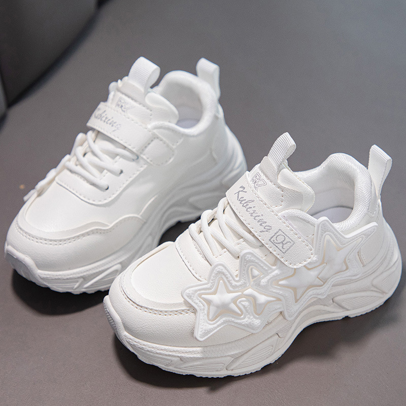 소녀 신발 24 봄 새로운 운동화 통기성 패션 중 큰 어린이 가죽 흰색 신발 초등학교 아버지 신발