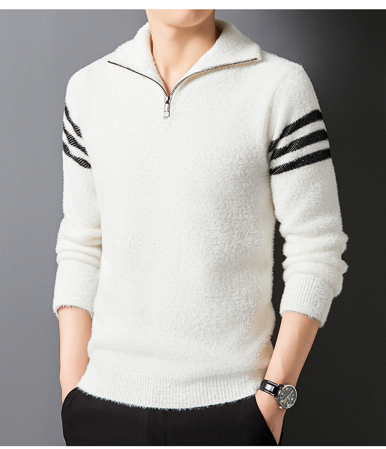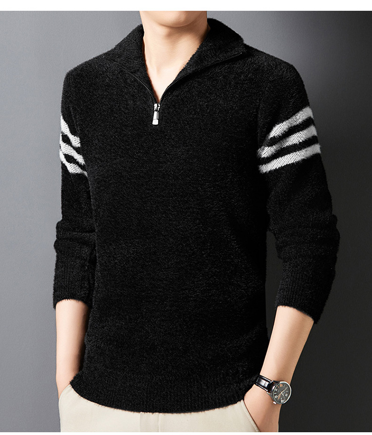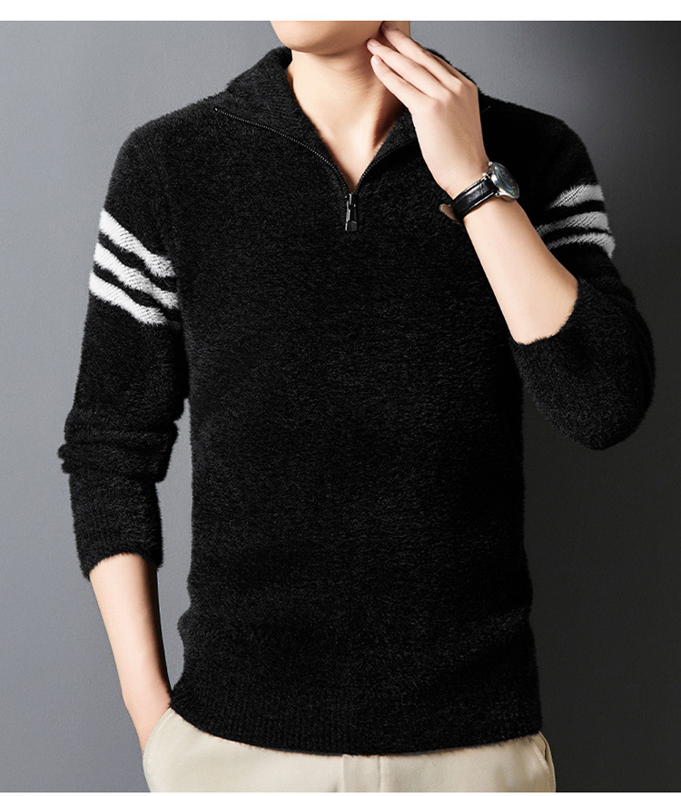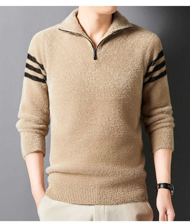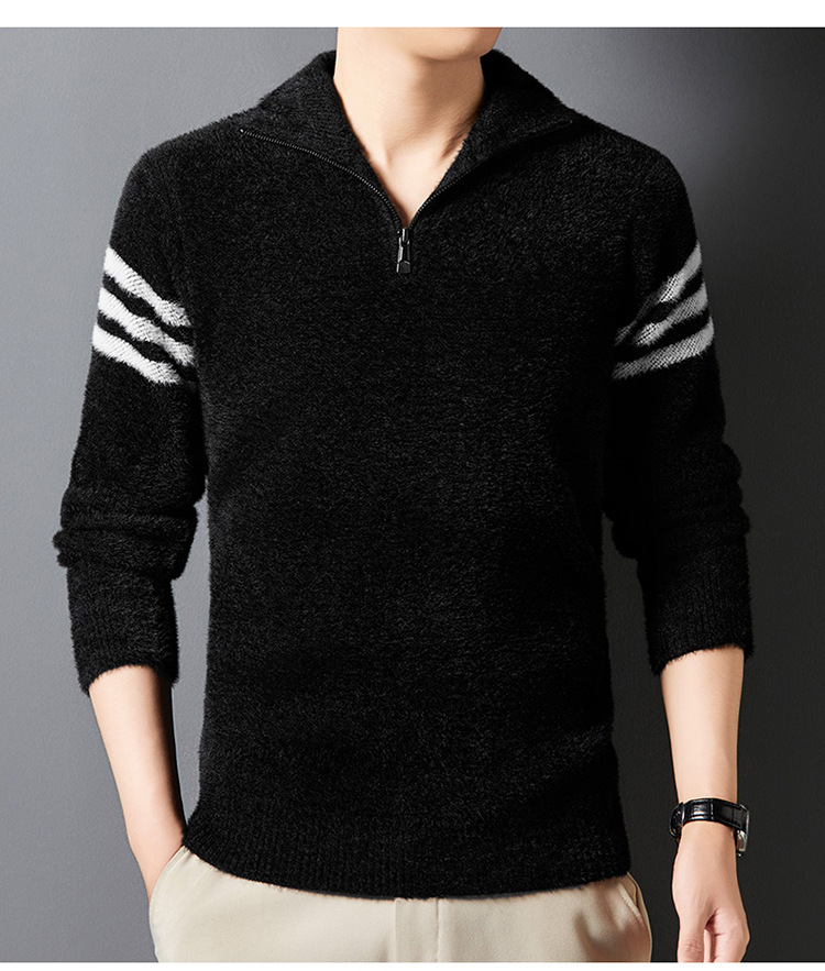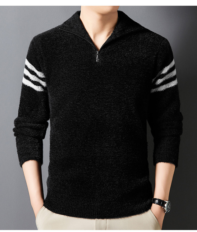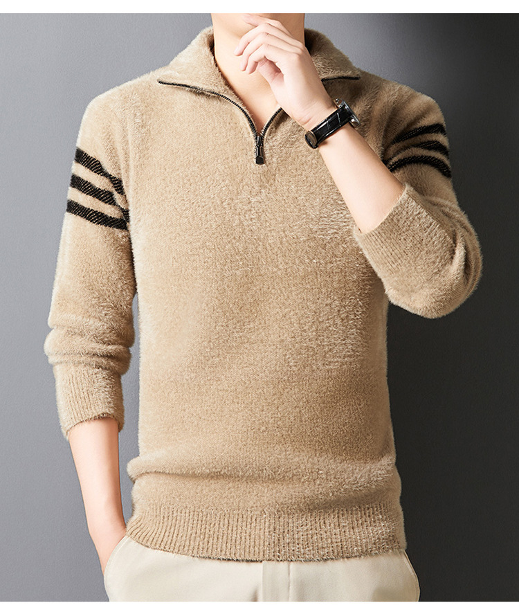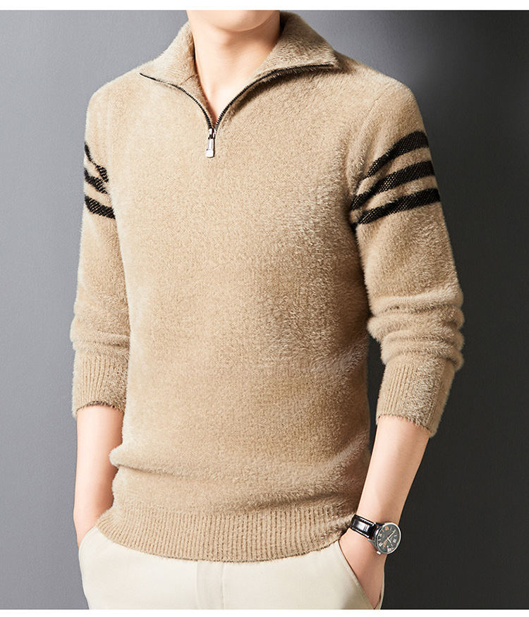 맞춤형 가을 겨울 새로운 스타일 하프 지퍼 편안한 스웨터 소프트 라펠 캐주얼 스웨터 남성 패션 하이 엔드 벨벳 아우터