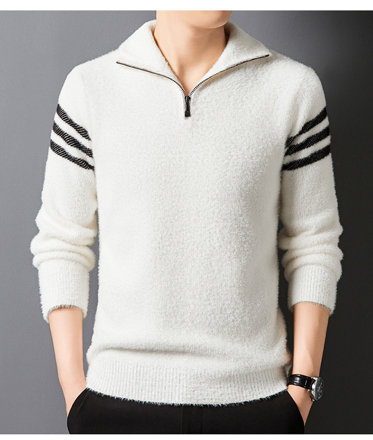 맞춤형 가을 겨울 새로운 스타일 하프 지퍼 편안한 스웨터 소프트 라펠 캐주얼 스웨터 남성 패션 하이 엔드 벨벳 아우터스토어 가기