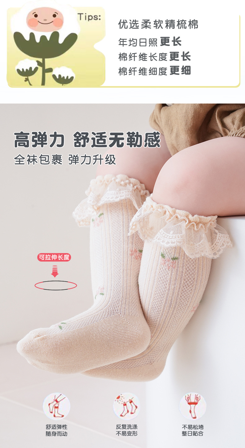 2024 가을 아기 아기 클래스 양말 귀여운 레이스 소녀 아기 공주 레이스 양말 뼈없는 높은 스타킹