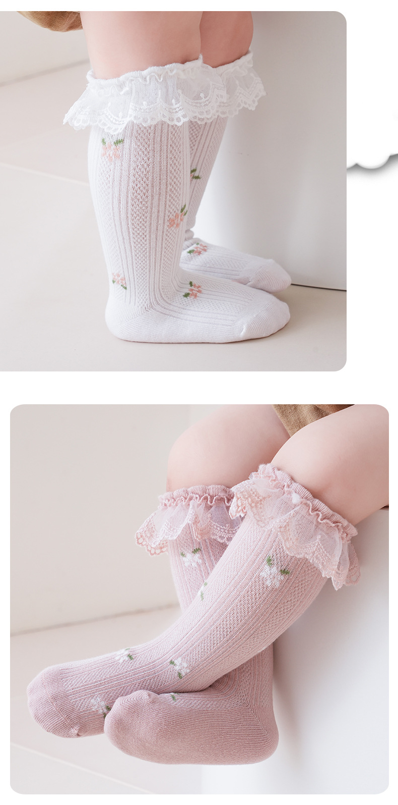 2024 가을 아기 아기 클래스 양말 귀여운 레이스 소녀 아기 공주 레이스 양말 뼈없는 높은 스타킹스토어 가기