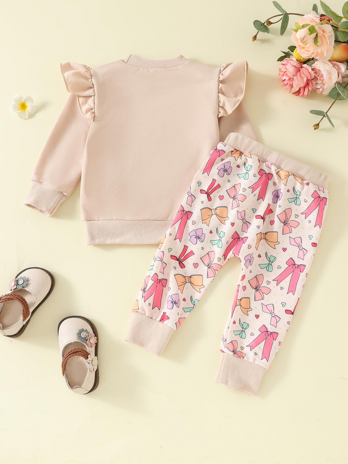 작은 비행 소매와 거즈 스커트가 달린 소녀 3 피스 세트