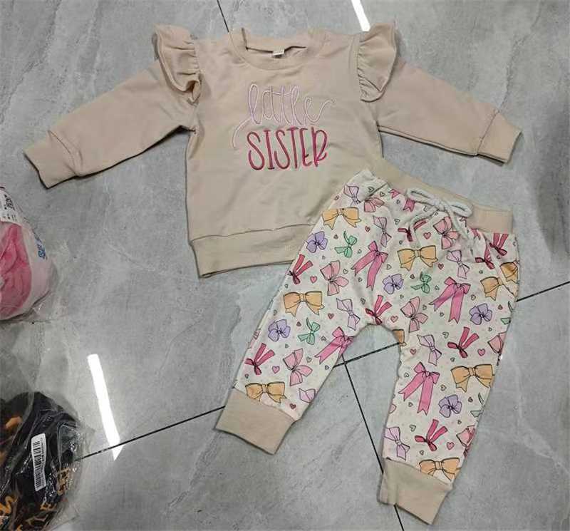 작은 비행 소매와 거즈 스커트가 달린 소녀 3 피스 세트스토어 가기