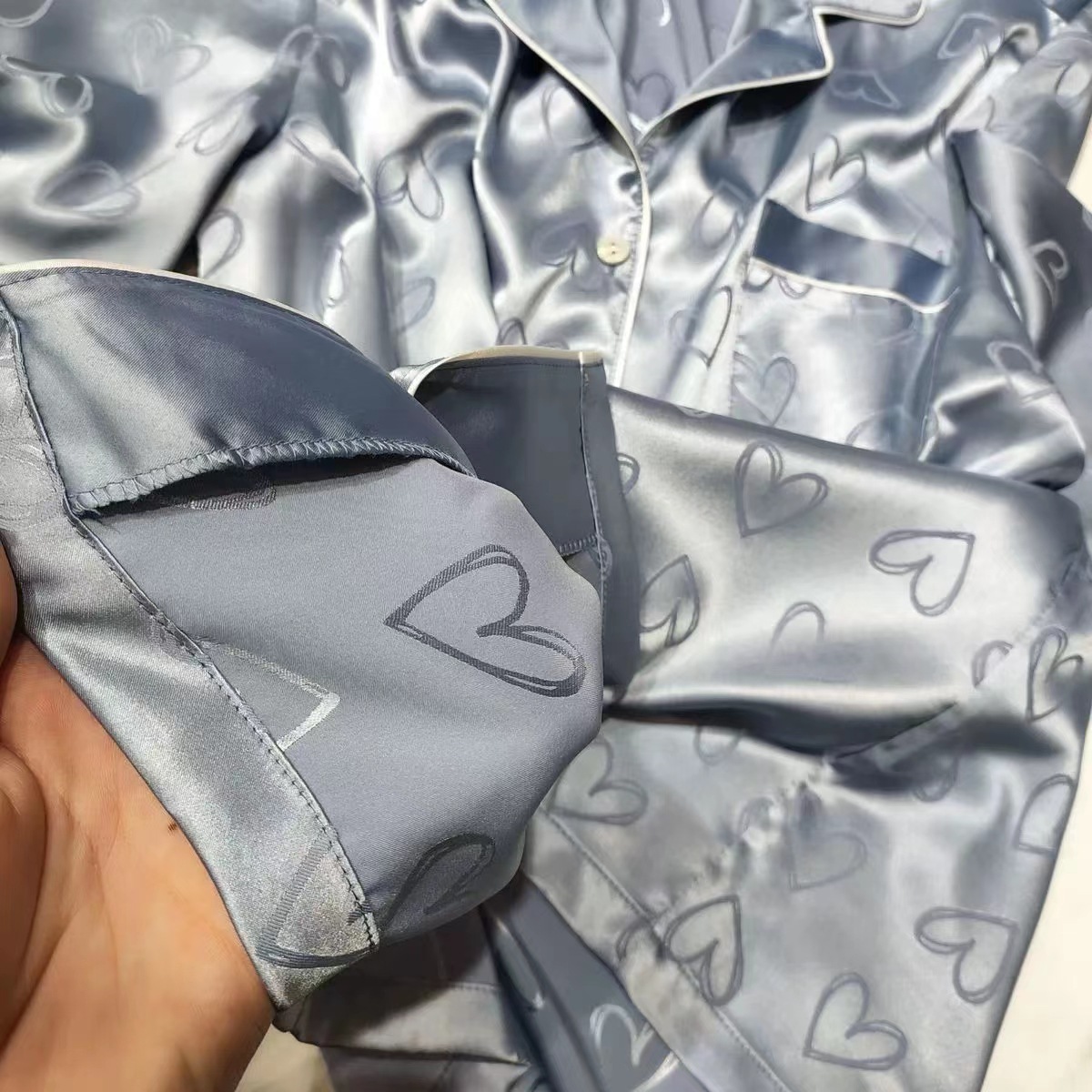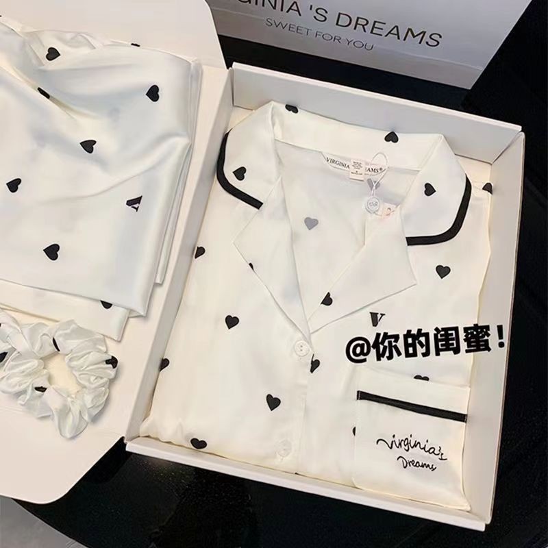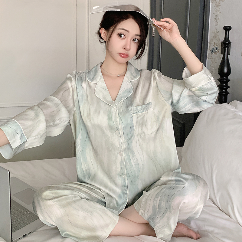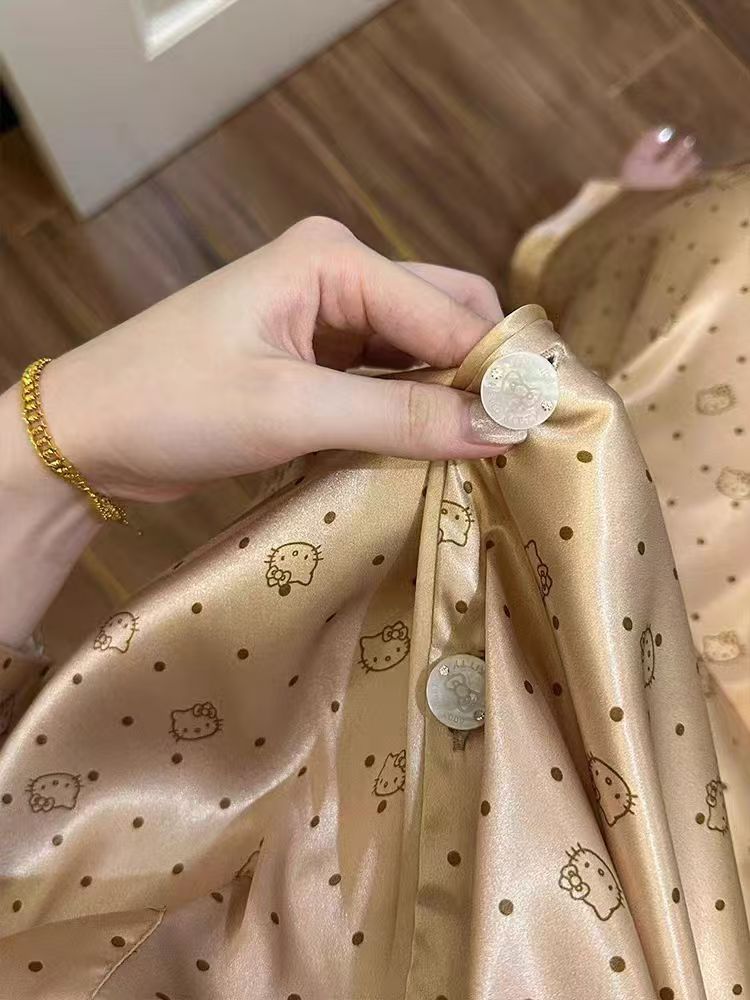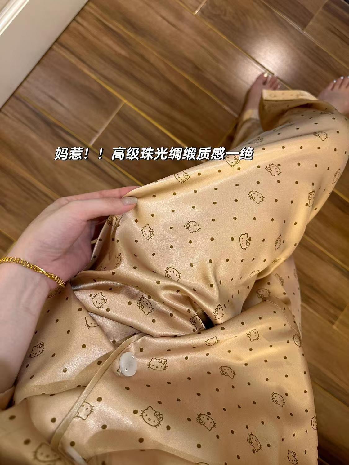 아이스 실크 잠옷 여성의 봄과 가을 대외 무역 도매 인쇄 귀여운 헬로 키티 긴 소매 광택 숙녀 홈 의류 세트스토어 가기