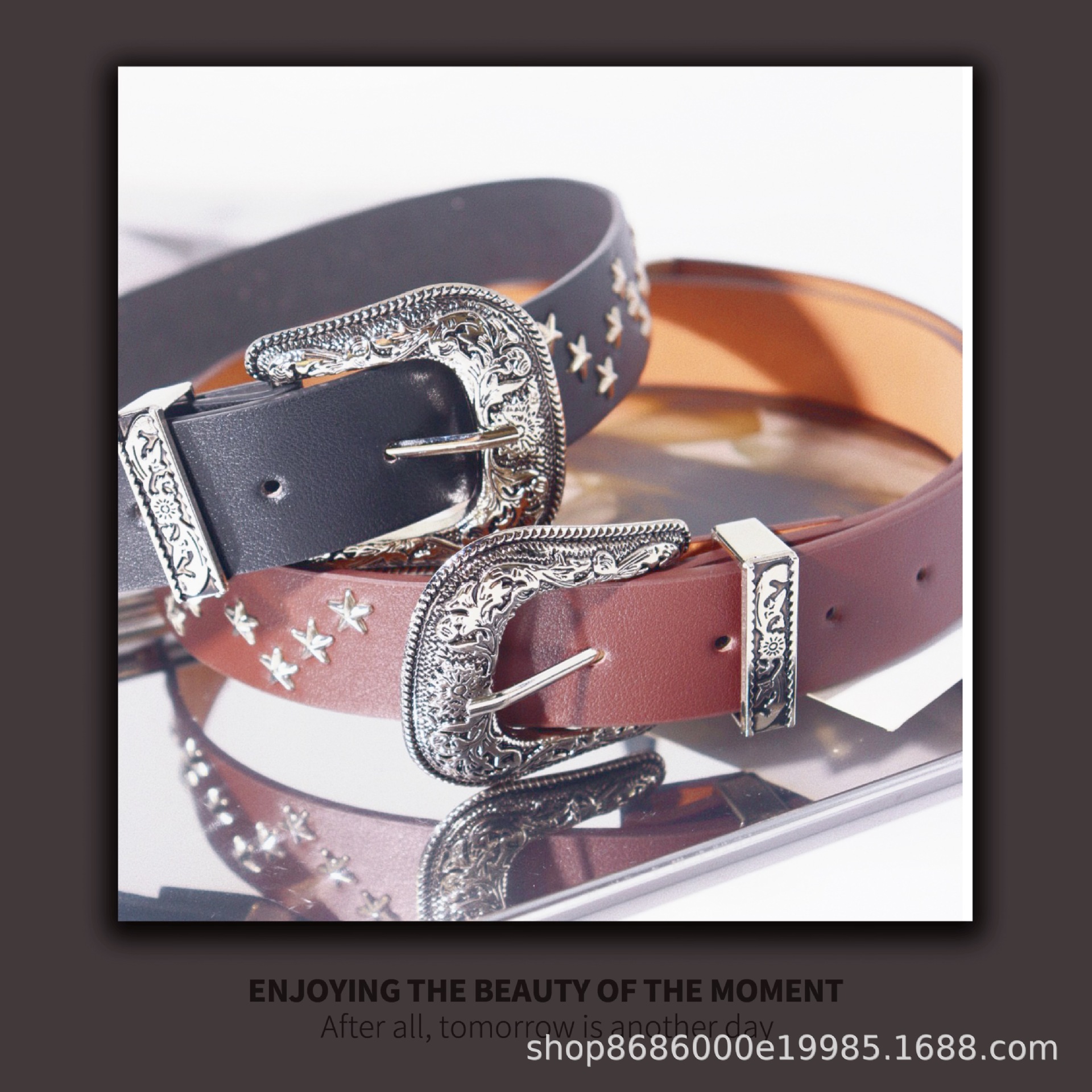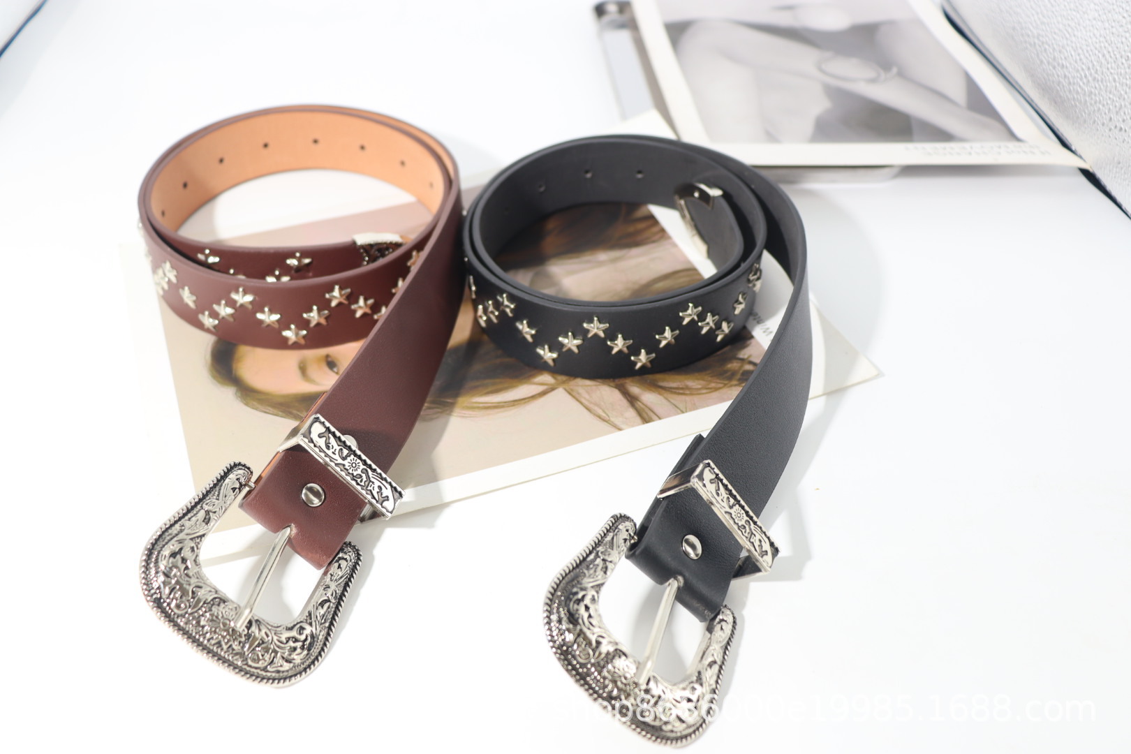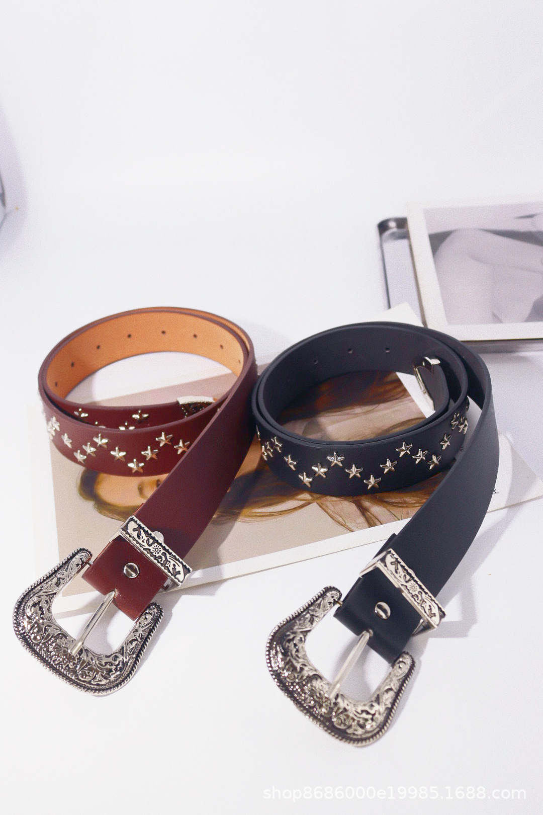 유럽과 미국의 펑크 스타일 와이드 벨트 리벳 고급 여성 벨트 여성 맞춤형 핀 버클 청바지 레트로 벨트스토어 가기