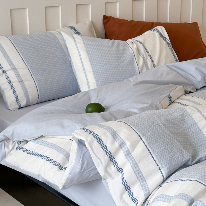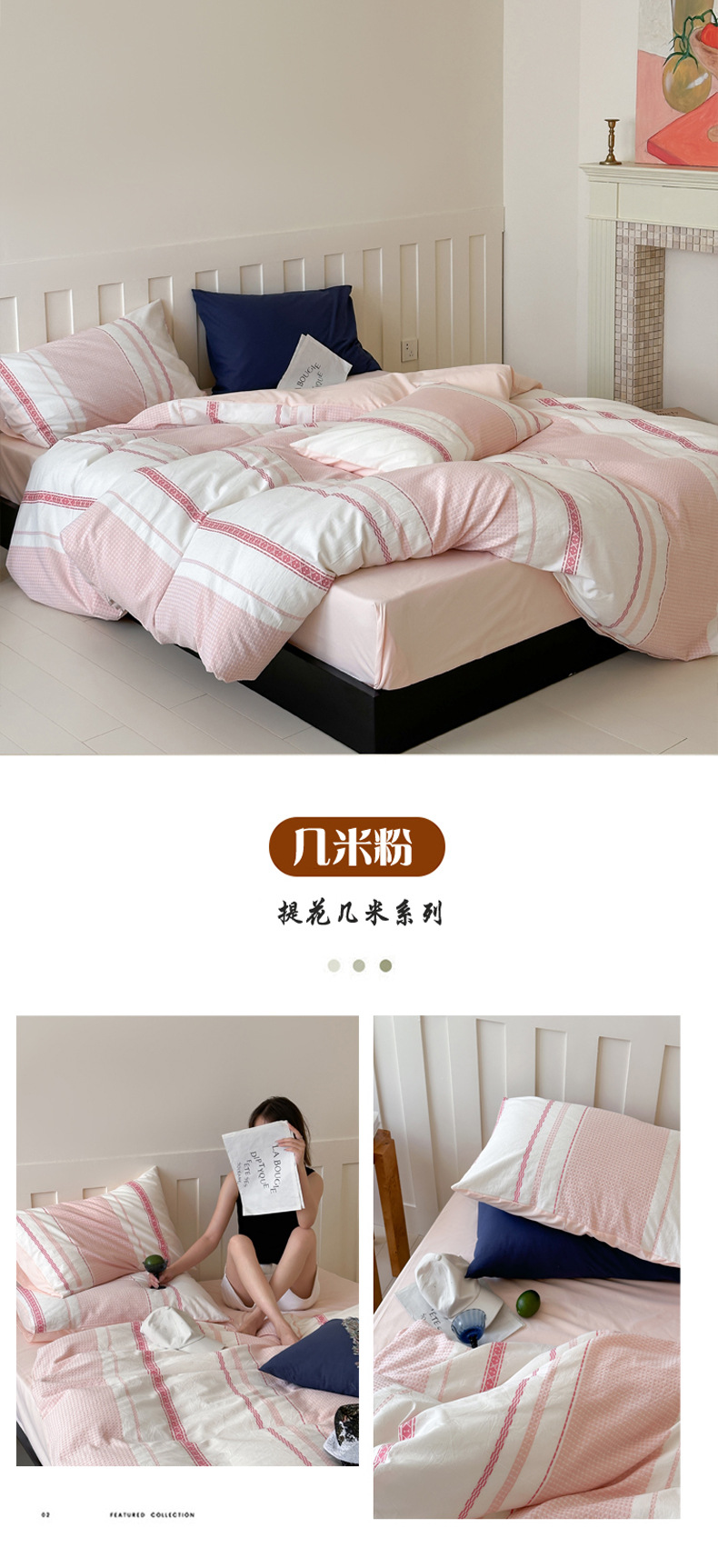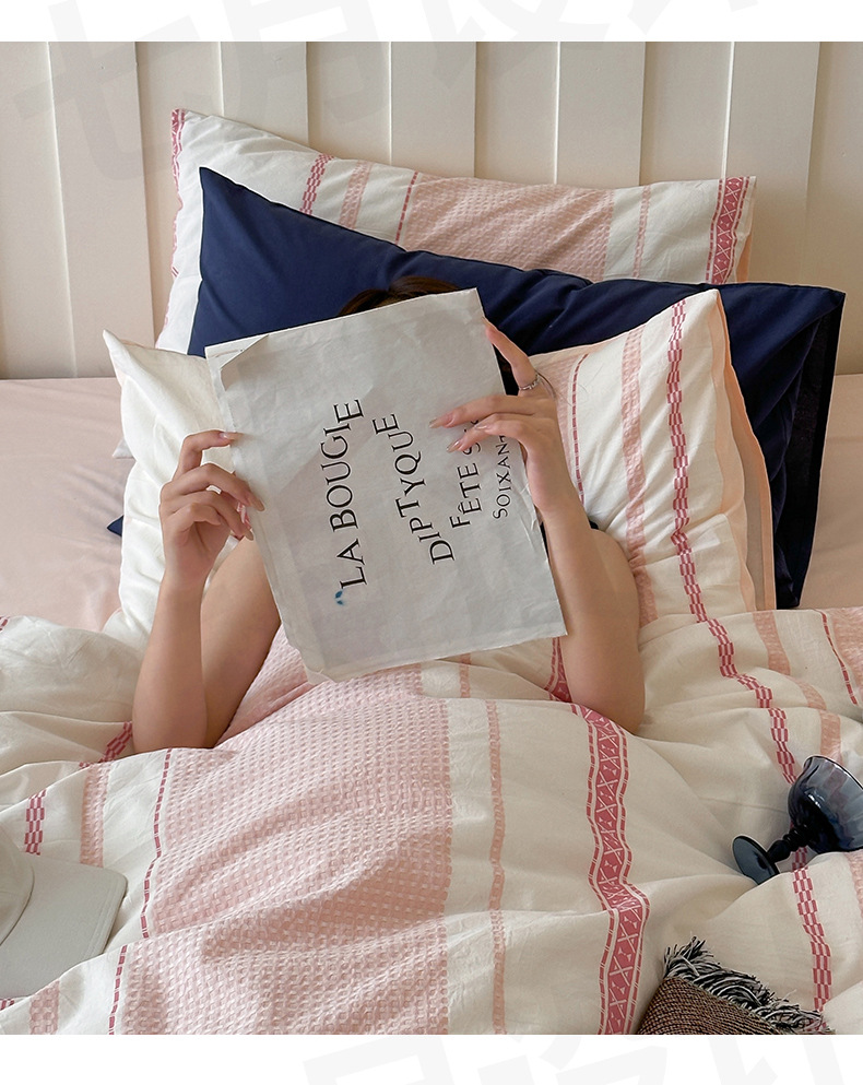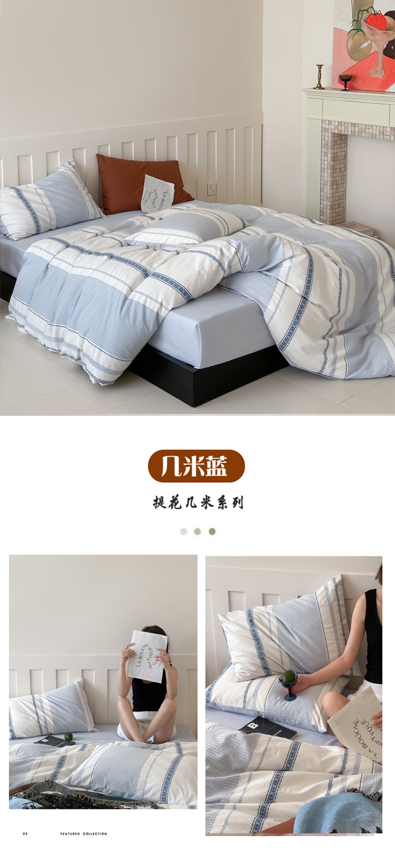 클래스 A 면화 씻은 면사 염색 자카드 침대 시트 4 피스 세트 100 면 이불 커버 작은 신선한 침구 4스토어 가기