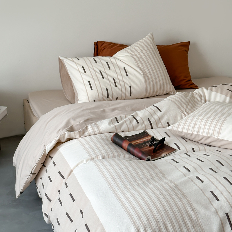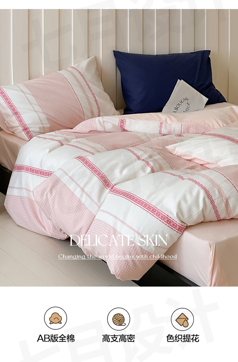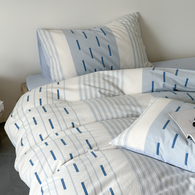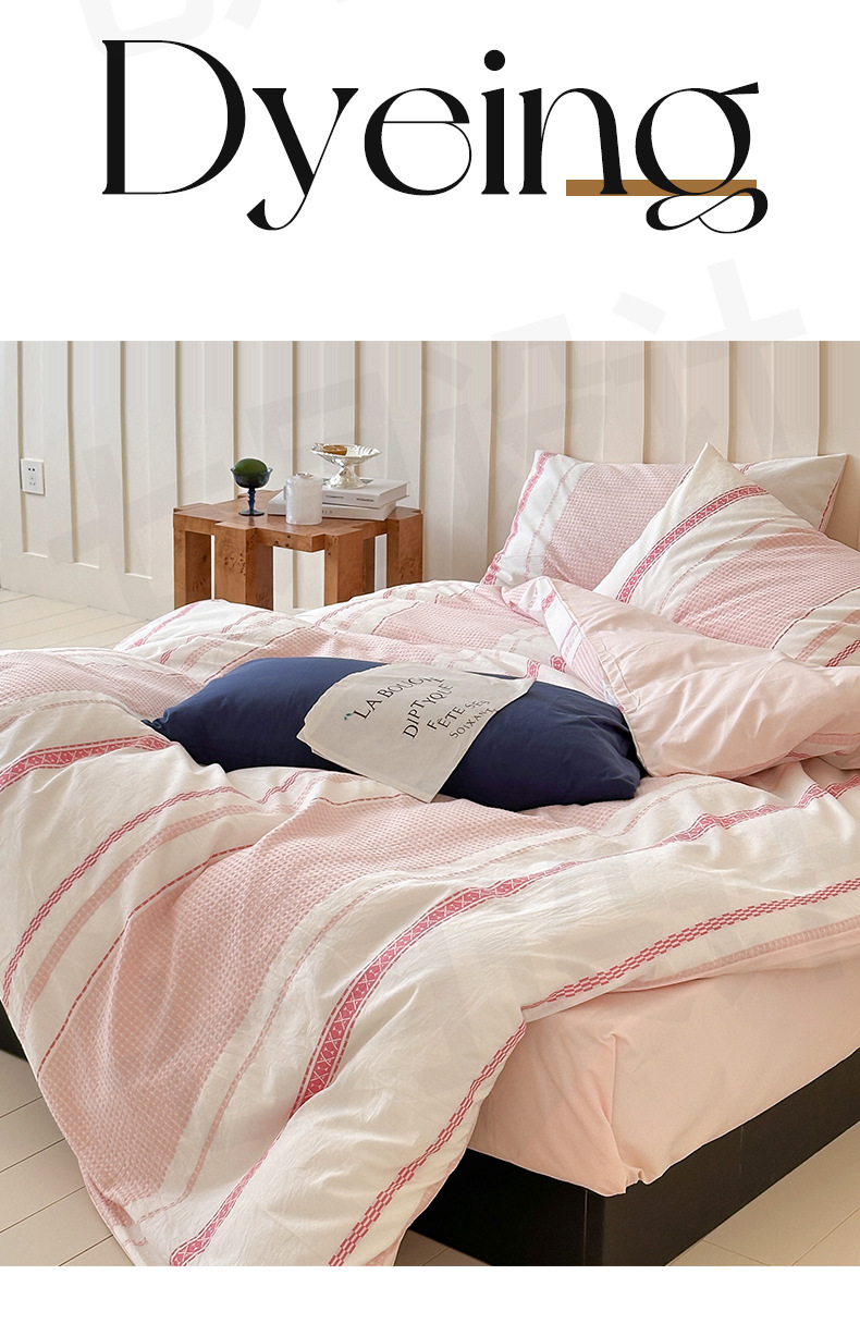 클래스 A 면화 씻은 면사 염색 자카드 침대 시트 4 피스 세트 100 면 이불 커버 작은 신선한 침구 4스토어 가기