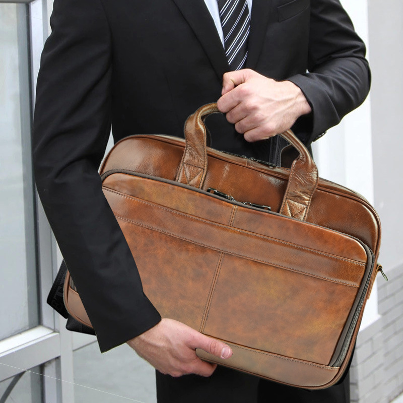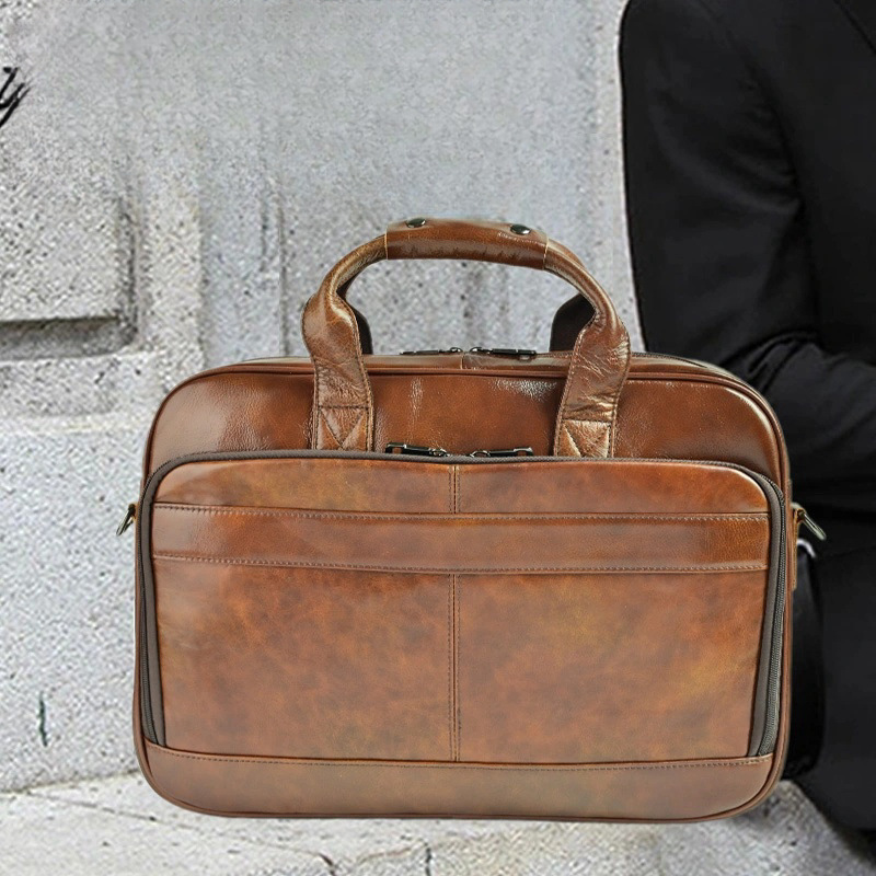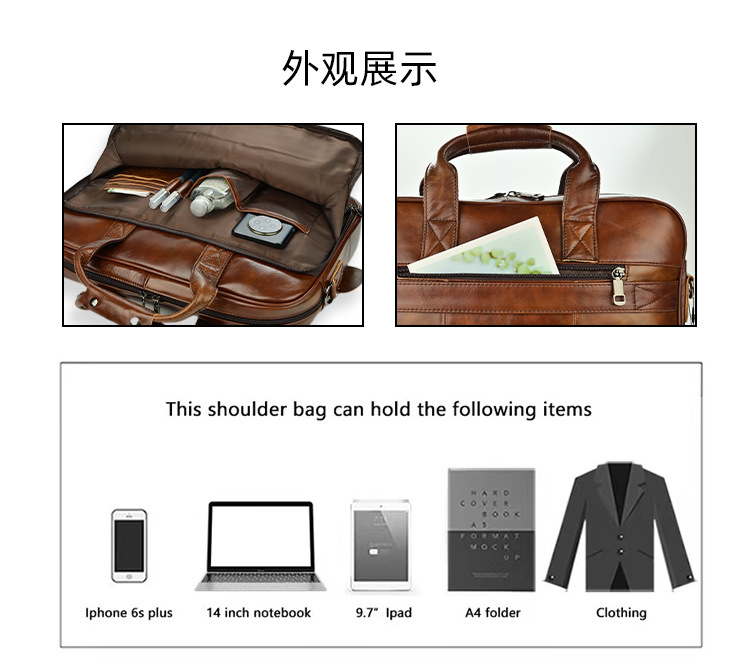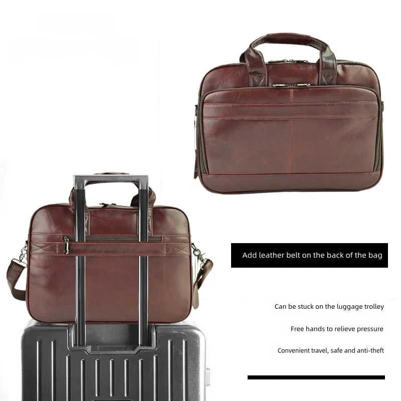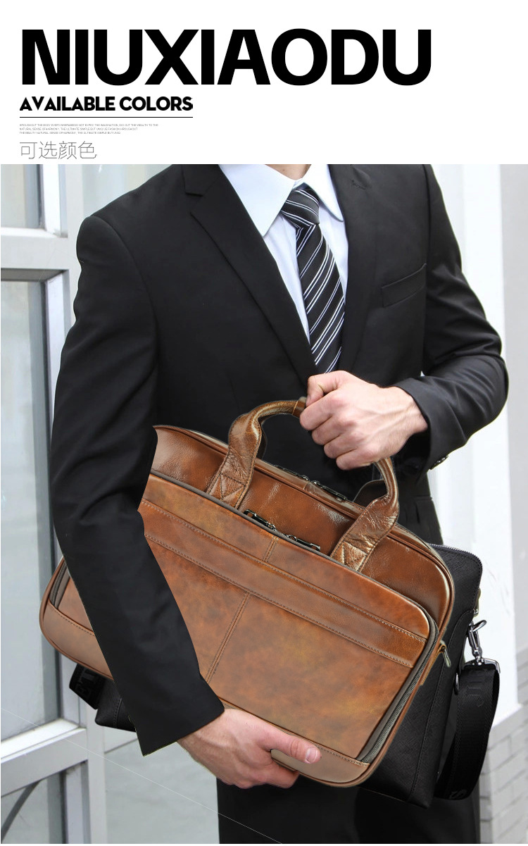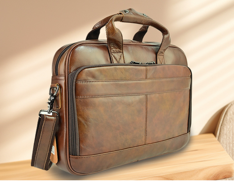 탑 레이어 Cowhide 비즈니스 서류 가방 어깨 크로스 바디 남성 가방 대용량 유행 캐주얼 노트북 15.6 핸드백스토어 가기