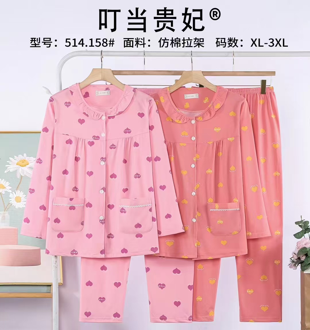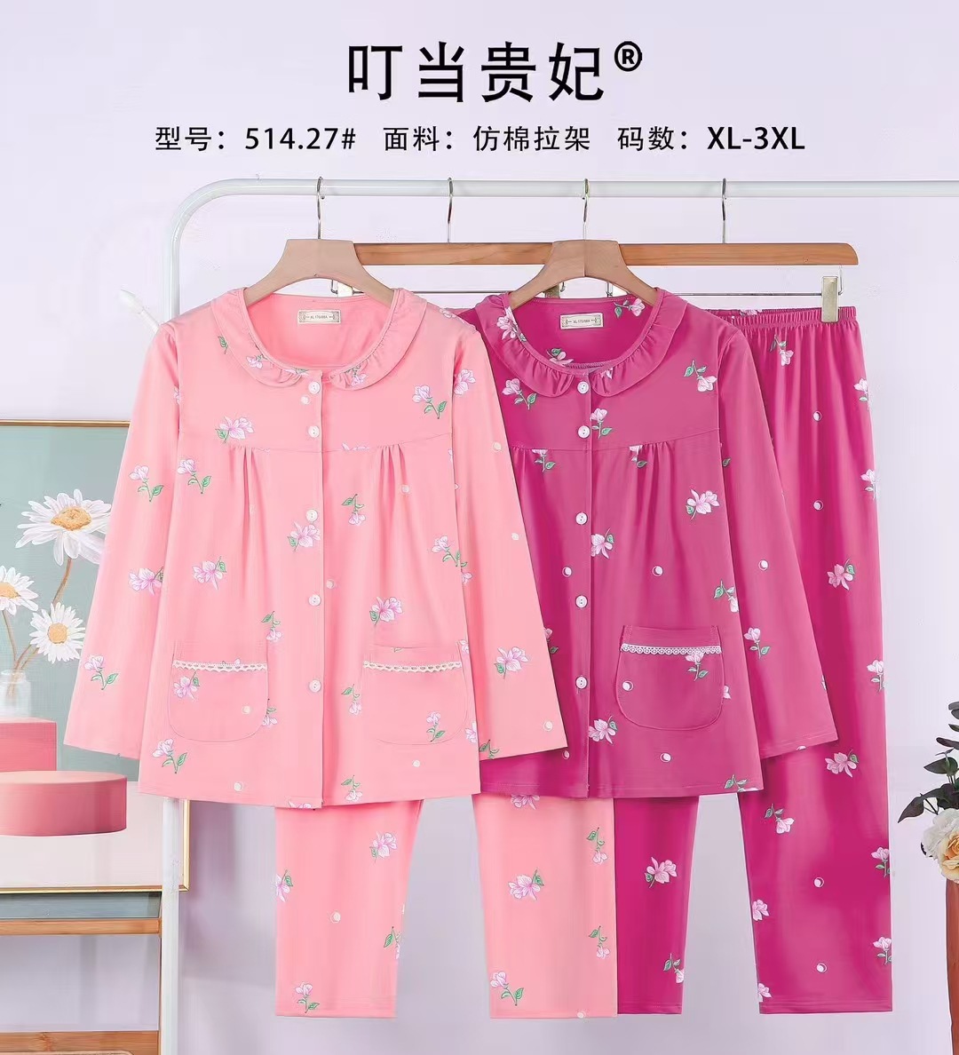 2024 징글 임페리얼 첩의 봄과 가을 여성 잠옷 캐주얼 편안한 느슨한 긴팔 바지 오픈 가슴 모방 면 홈 옷스토어 가기