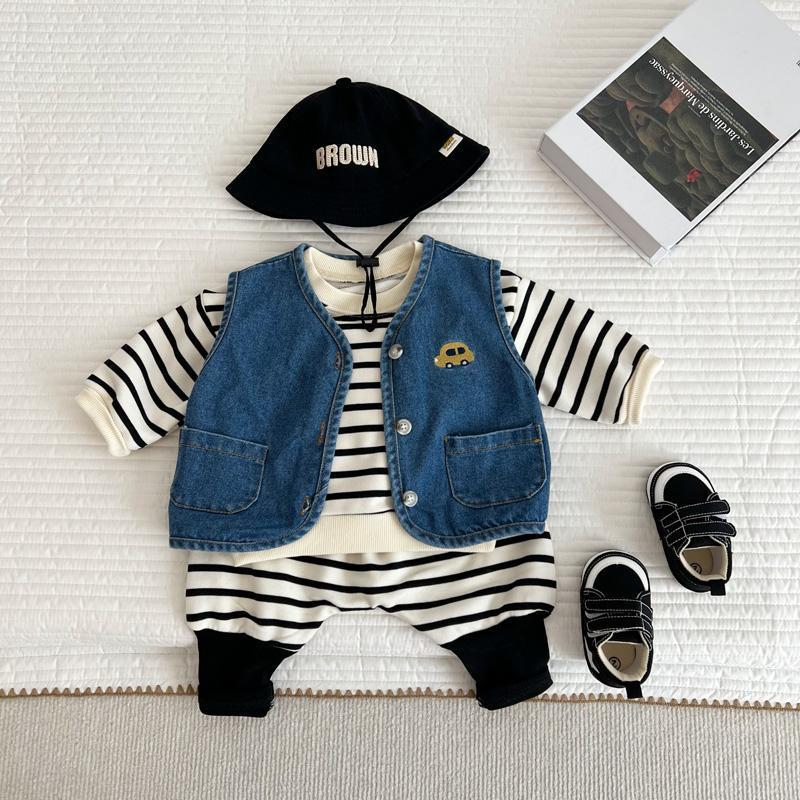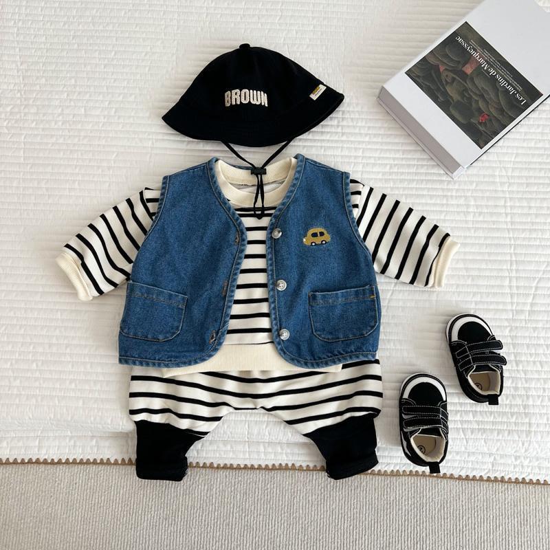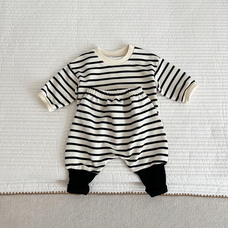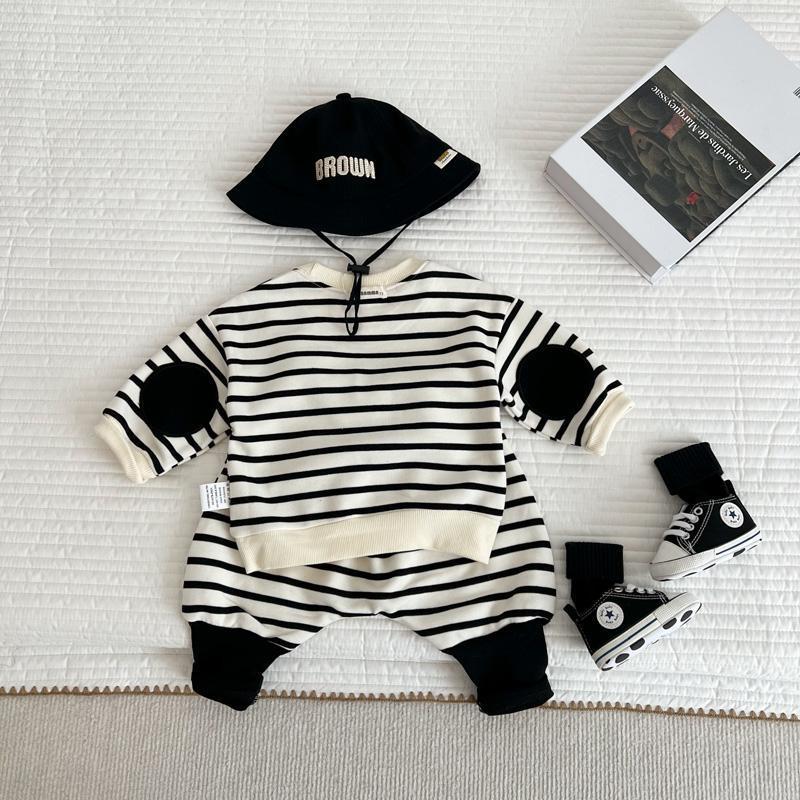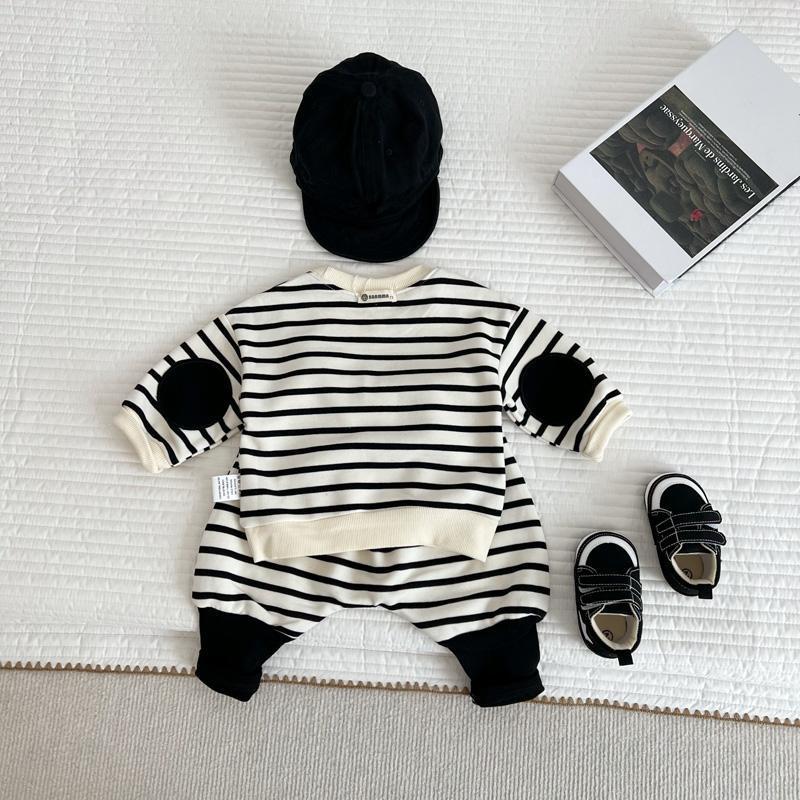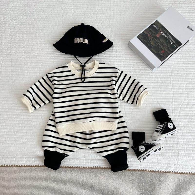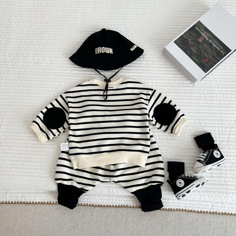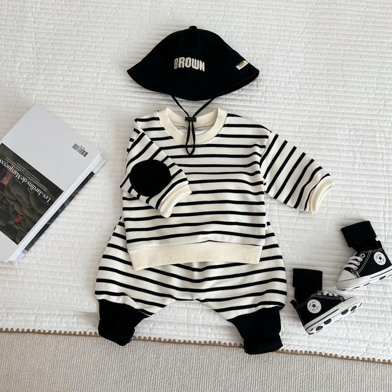 유아 새로운 한국 스타일 봄 착용 줄무늬 긴 소매 땀 큰 PP 다리 스포츠 바지 아기 캐주얼 세트