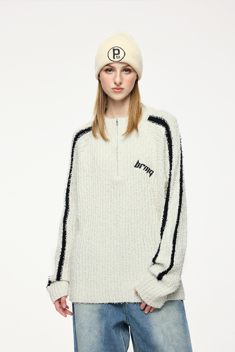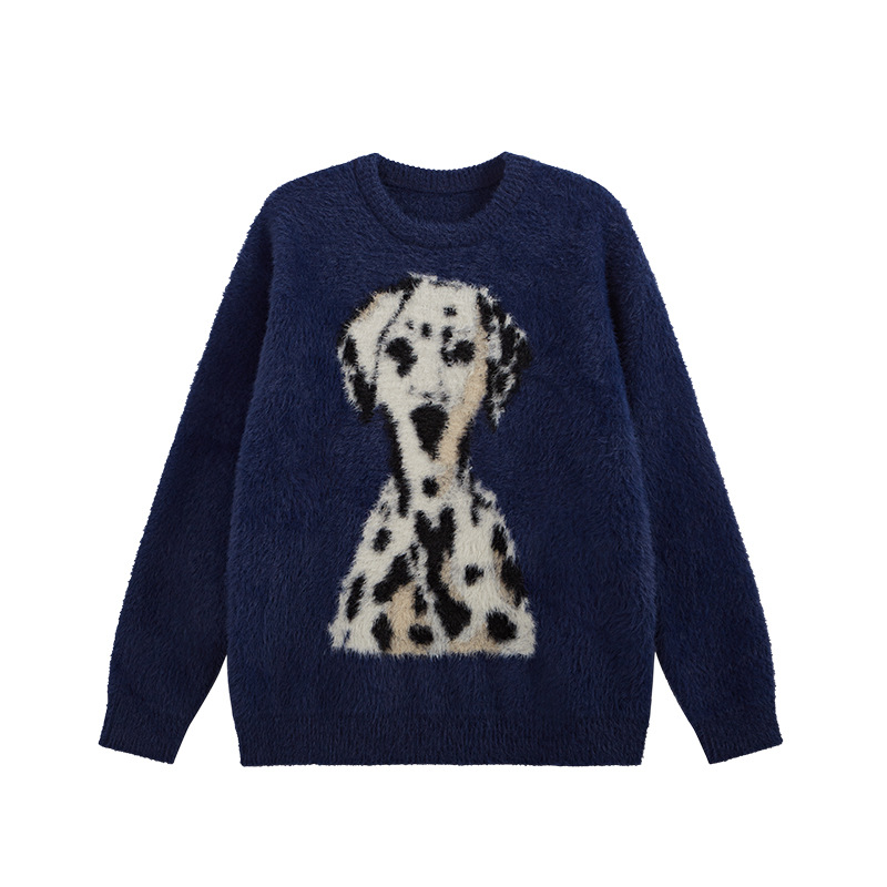 Jie Zhan 남성복 | 미국 스트리트 레트로 스웨터 2025 봄 조수 브랜드 수 놓은 크루 넥 니트웨어 남성과 여성