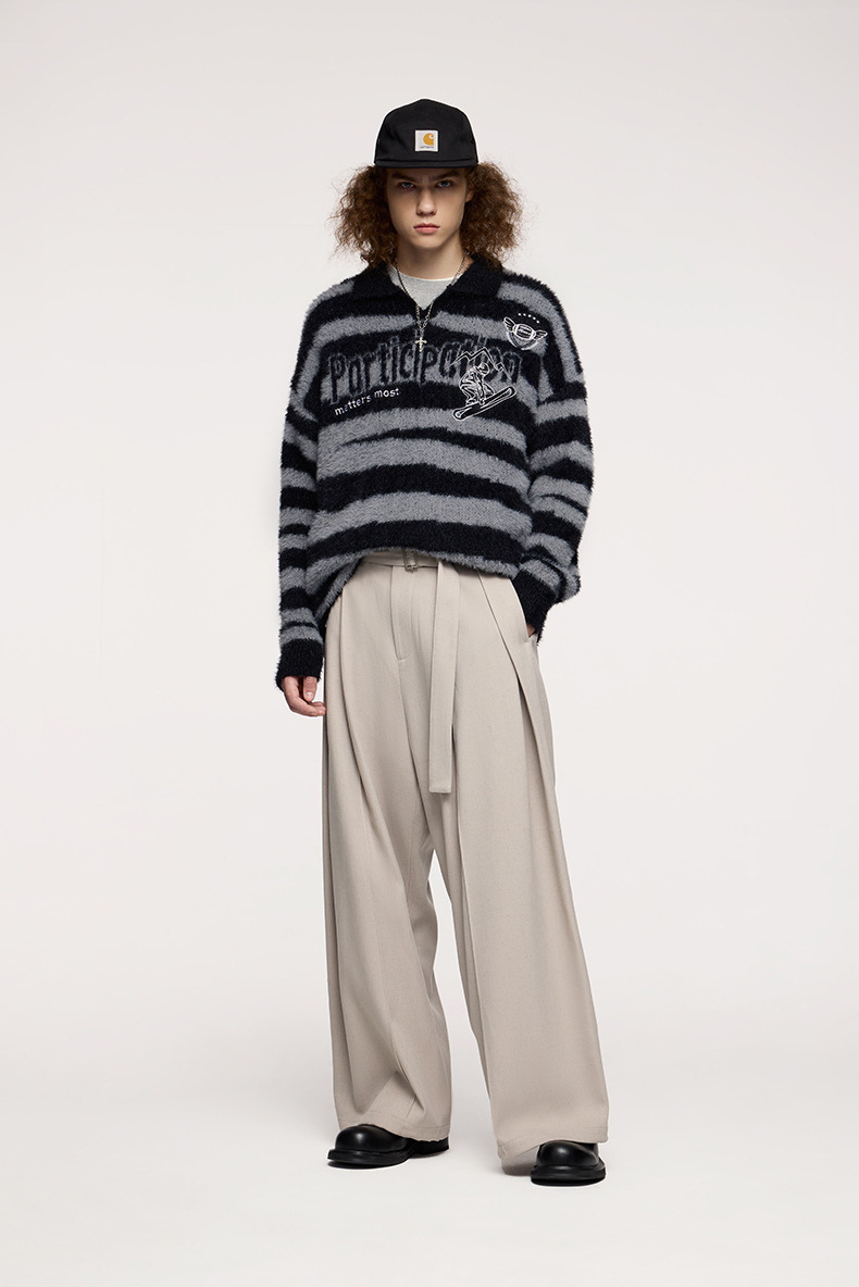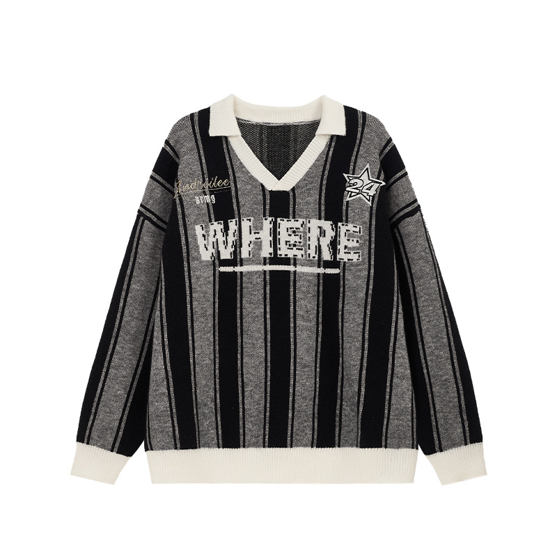 Jie Zhan 남성복 | 미국 스트리트 레트로 스웨터 2025 봄 조수 브랜드 수 놓은 크루 넥 니트웨어 남성과 여성스토어 가기