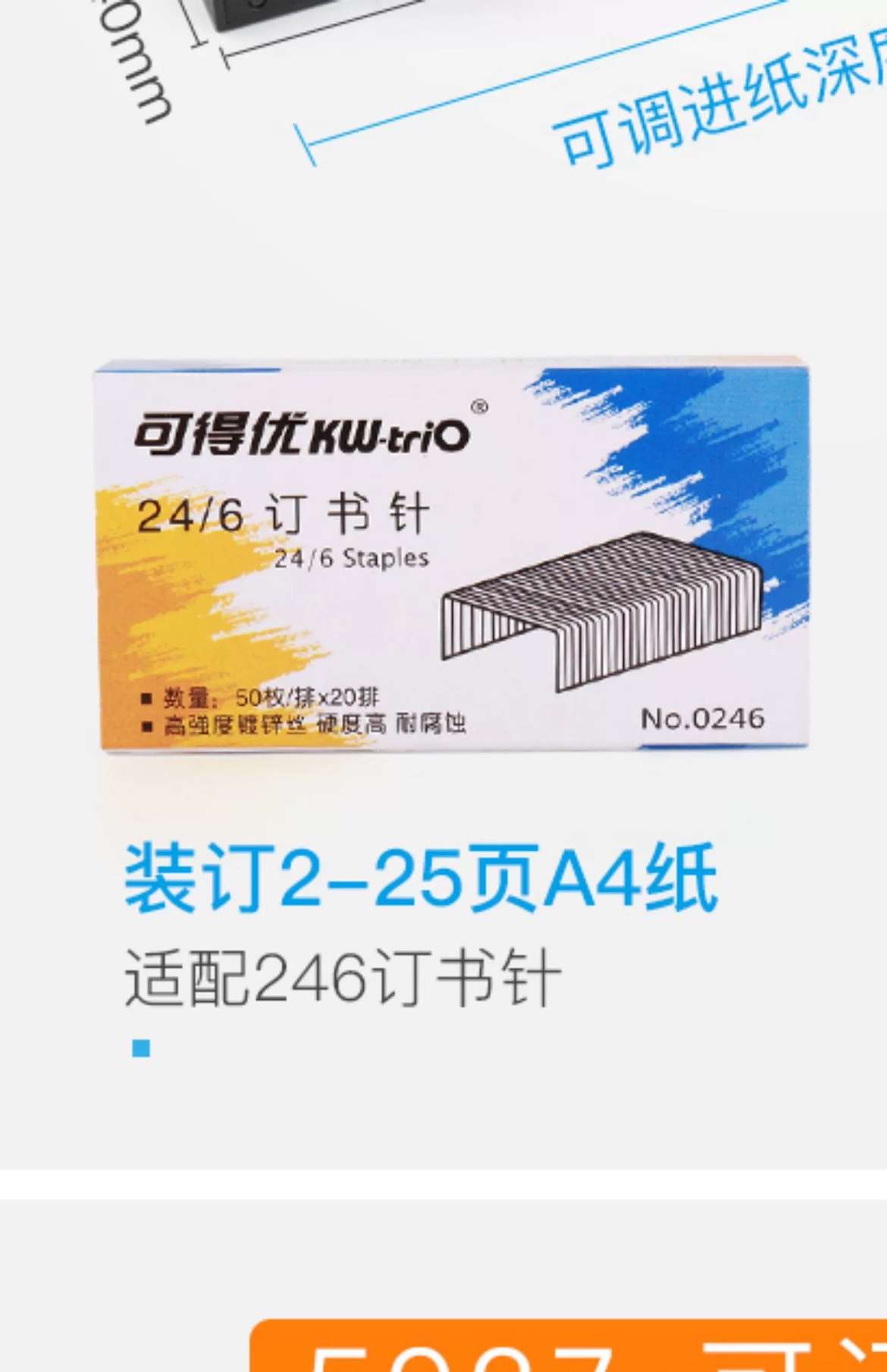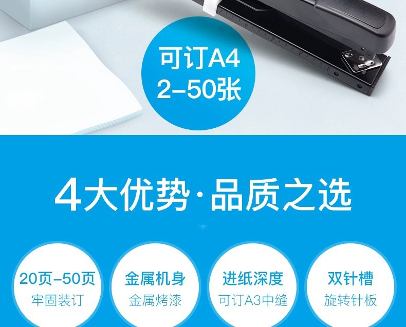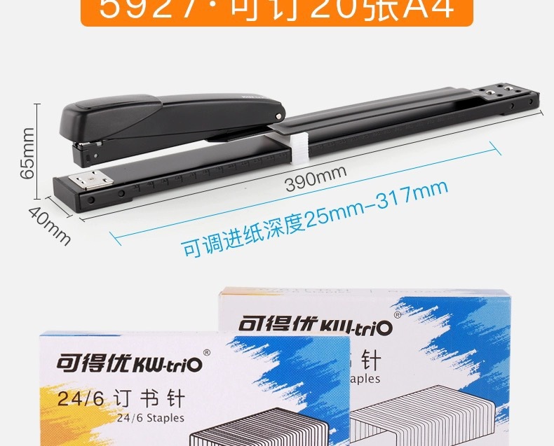 可得优中缝商务多功能加厚订书机长形订书机长臂省力订书器