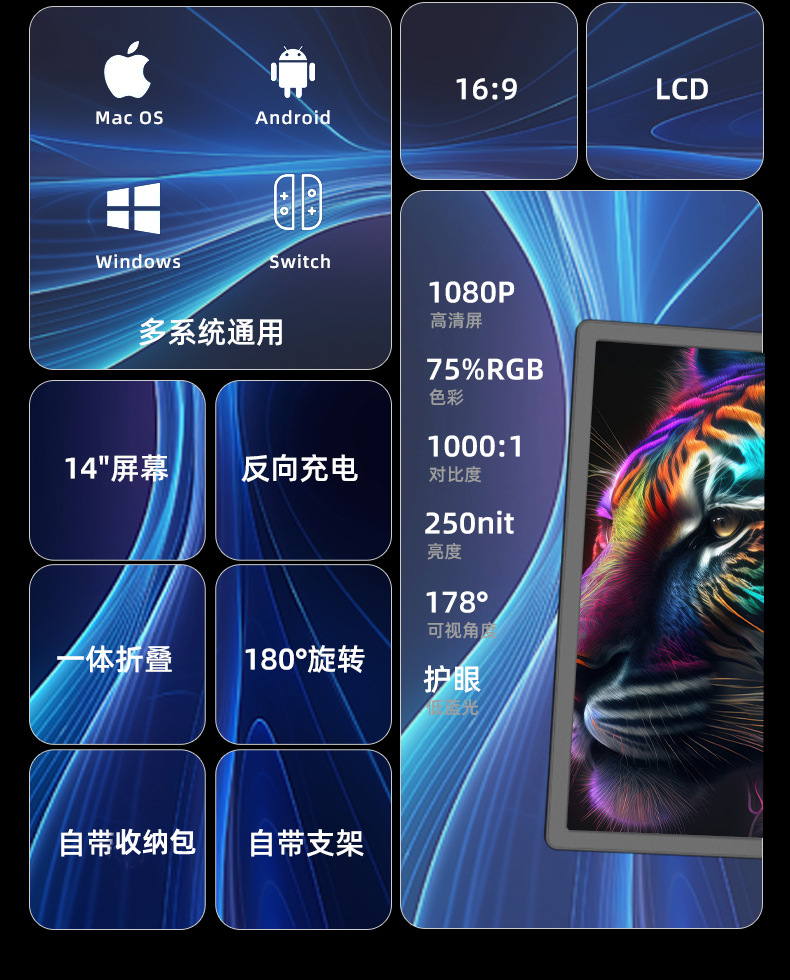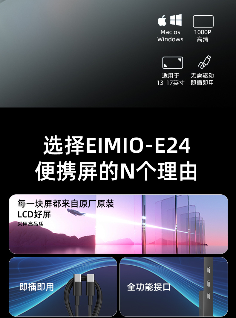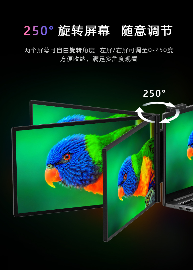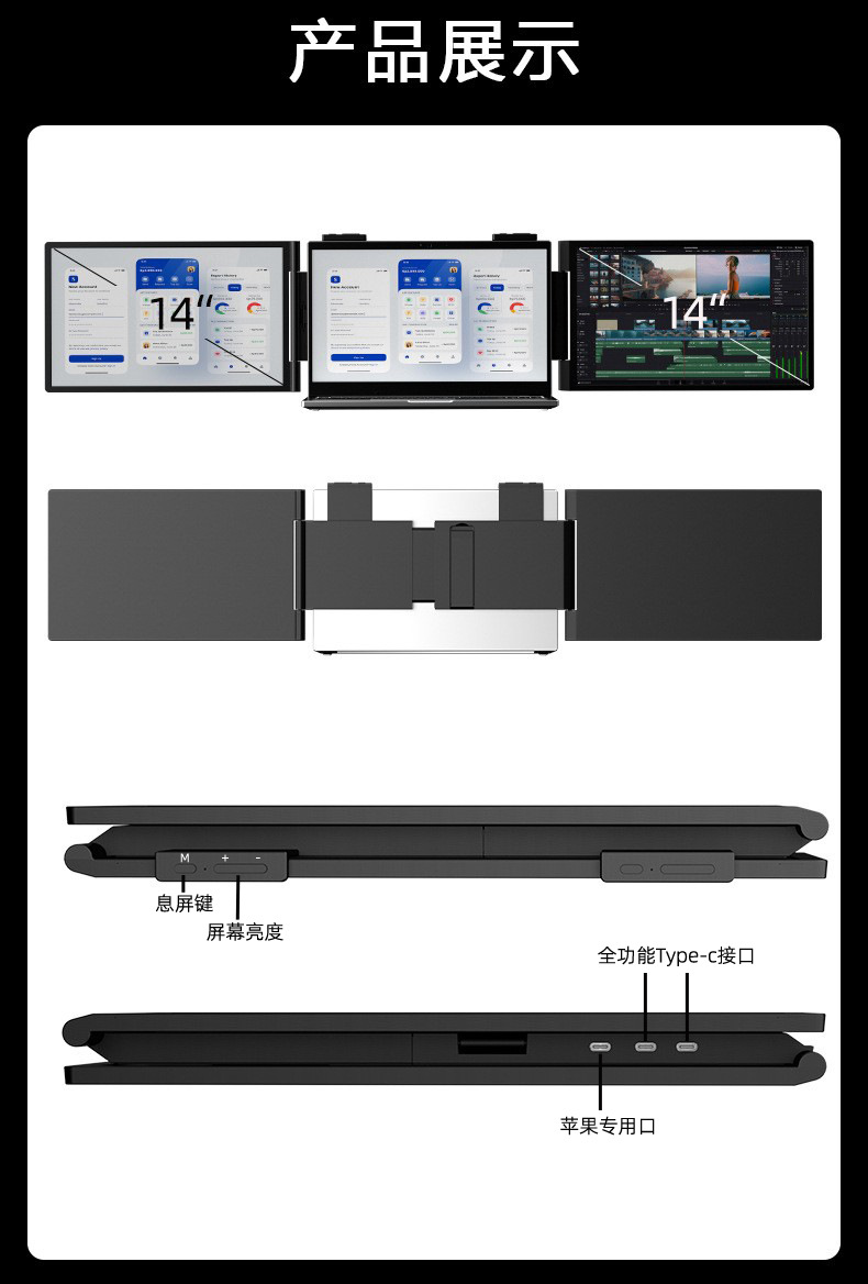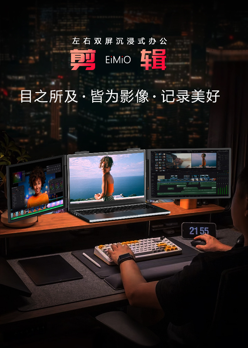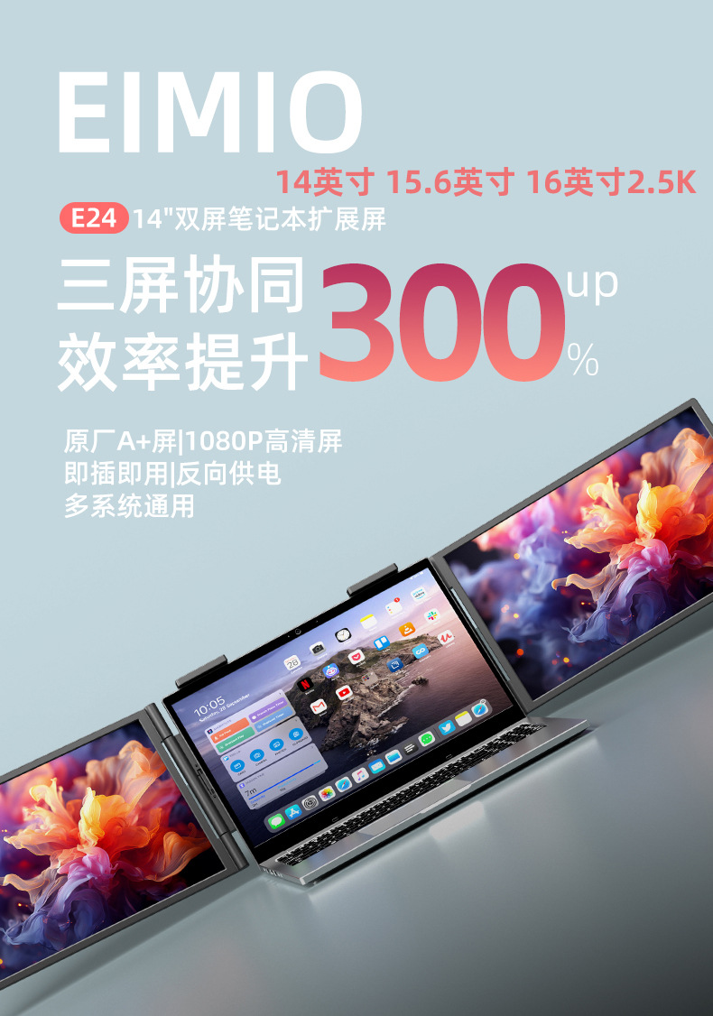 EIMIO 14인치 16인치 2.5K 좌우 듀얼 스크린 휴대용 모니터 일선 3스크린 노트북 보조 스크린