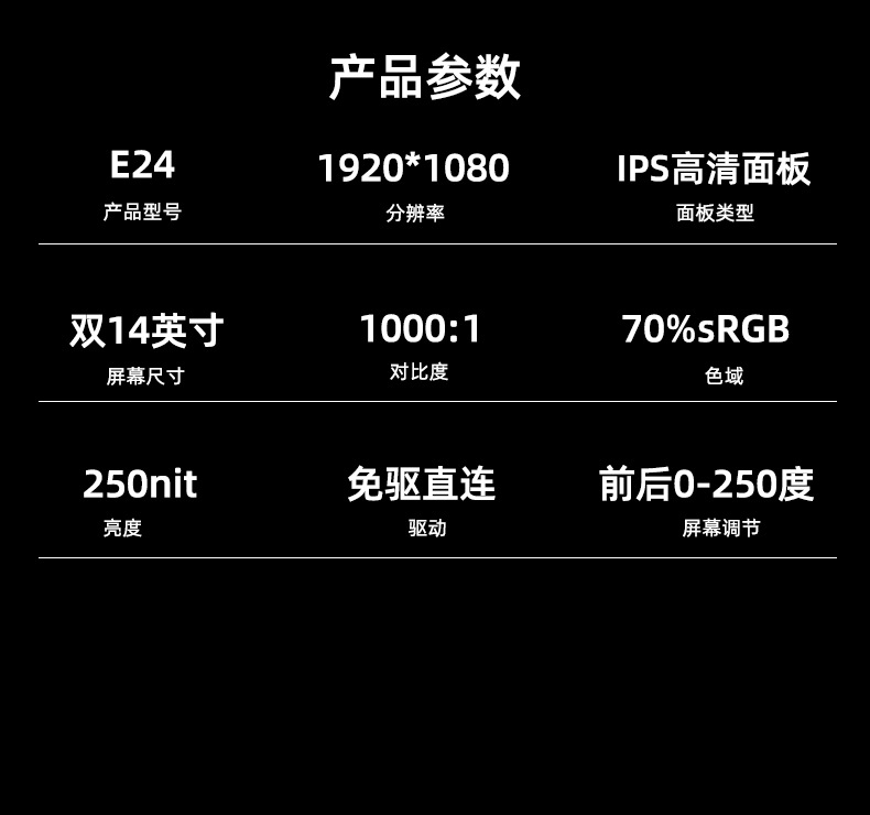 • 블랙 14inch 좌우 듀얼 스크린 1080P(E24)