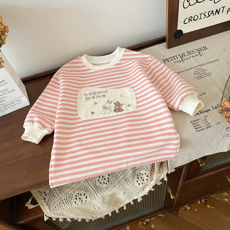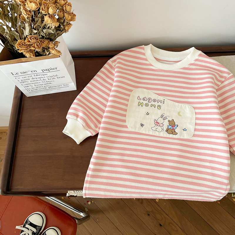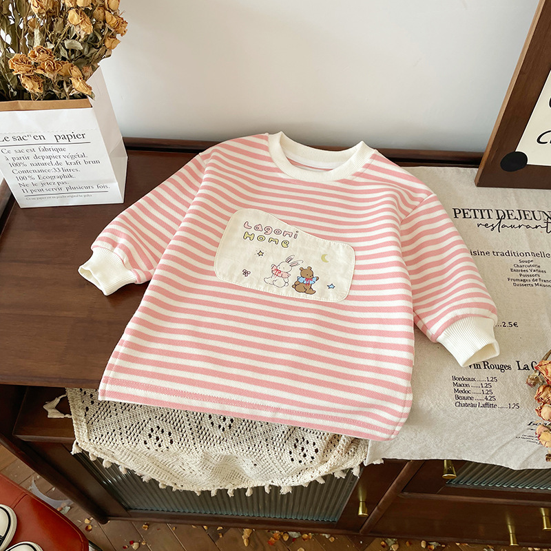[재고] QY241180 어린이 치마 2024 가을 새 한국 여성의 보물 줄무늬 원피스 귀여운 A스토어 가기