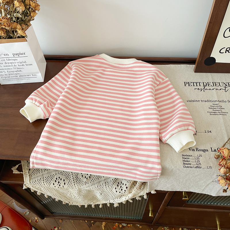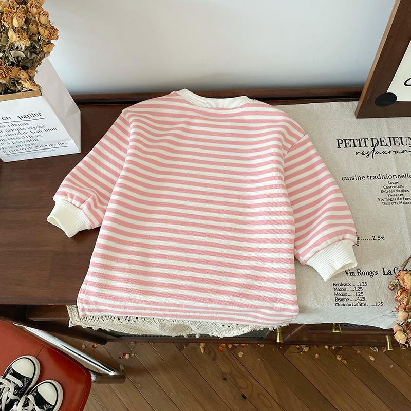 [재고] QY241180 어린이 치마 2024 가을 새 한국 여성의 보물 줄무늬 원피스 귀여운 A