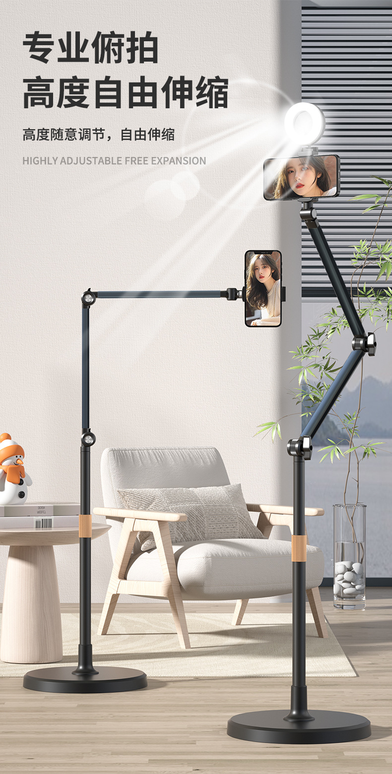 라이브 휴대 전화 착륙 및 오버 헤드 촬영을위한 특별 스탠드 휴대 전화 스탠드 촬영 거울 생방송 스탠드 다기능 360 도 회전