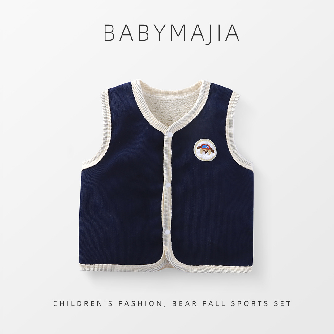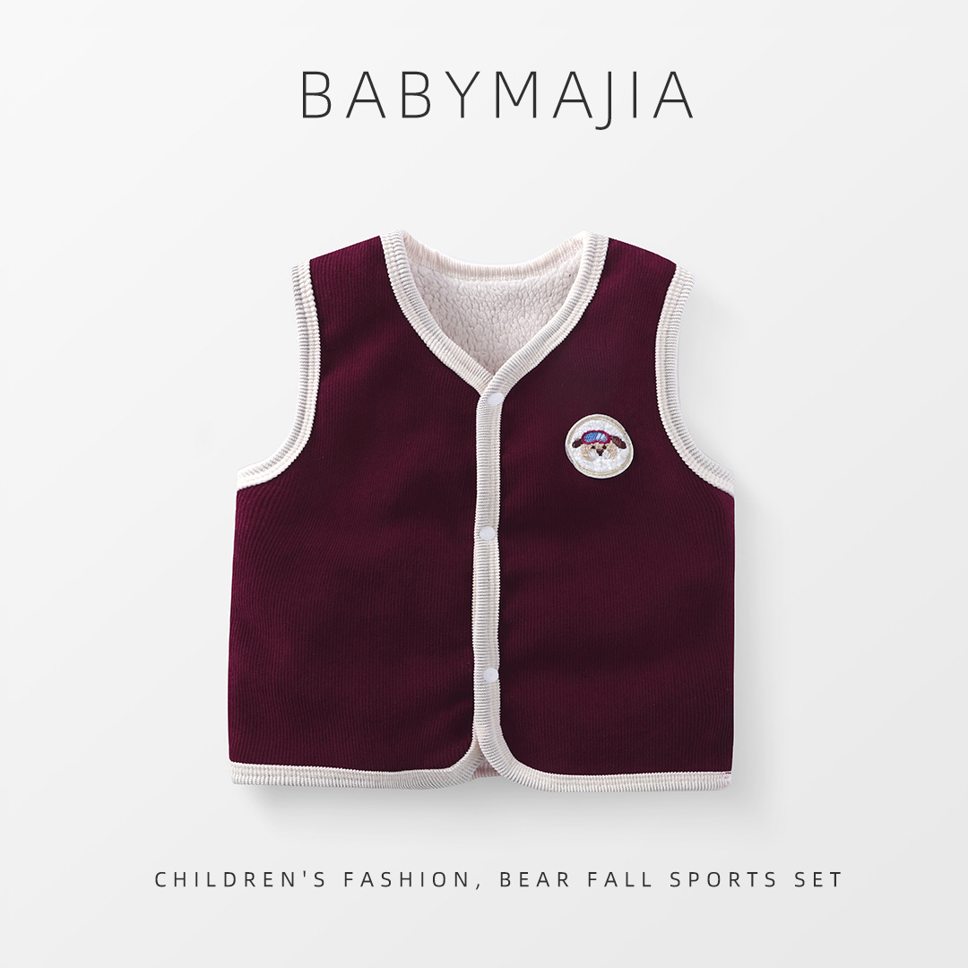 소년 소녀를위한 어린이 조끼 두꺼운 따뜻한 아우터 착용 코듀로이 가을과 겨울 기모 조끼 아기의 외부 왁스 코트스토어 가기