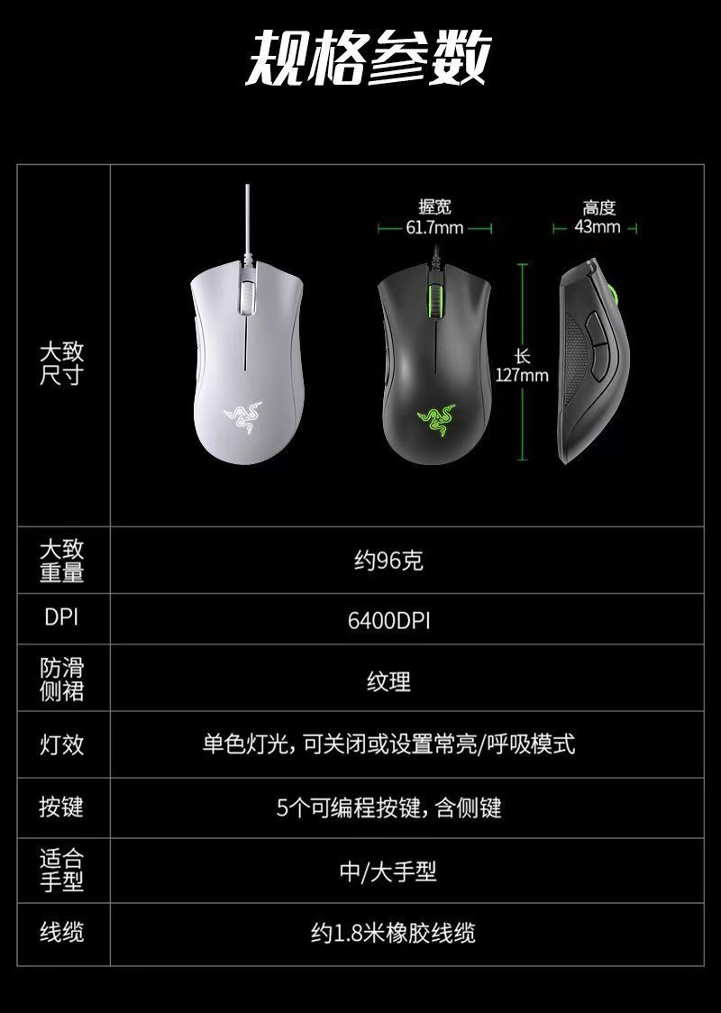 연옥 바이퍼 6400dpi 컴퓨터 표준 판 유선 게임 비디오 마우스 USB 인터페이스 LOL 마우스스토어 가기
