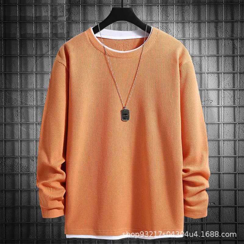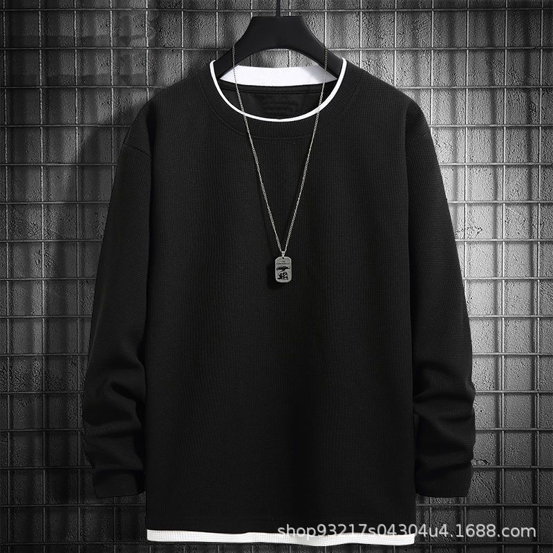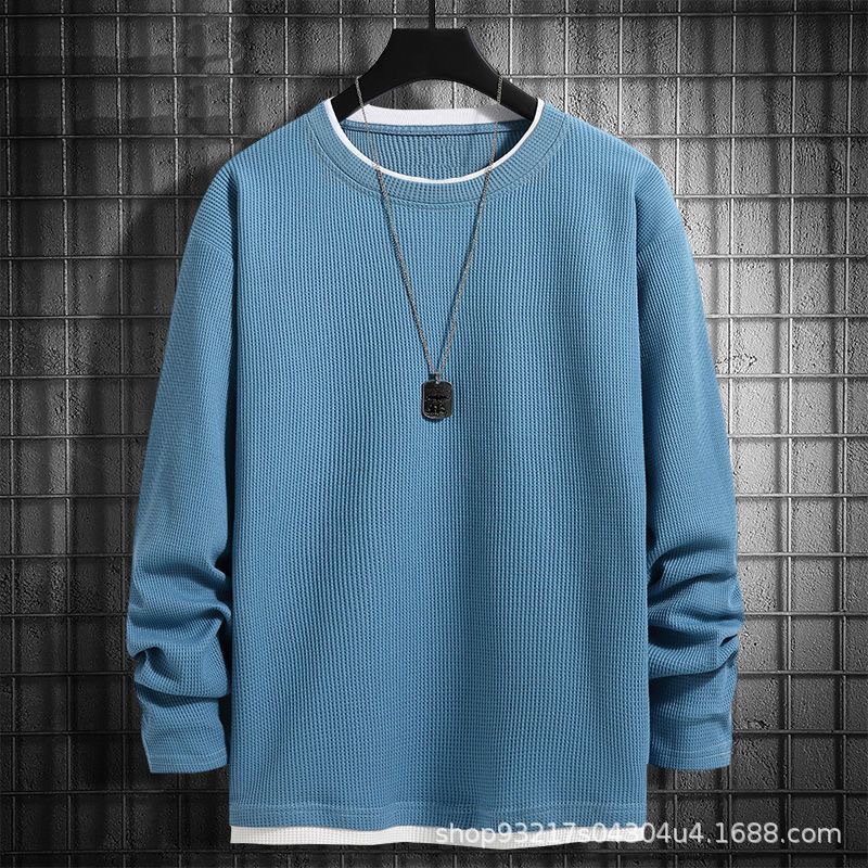 가짜 2 피스 와플 봄과 가을 무거운 크루 넥 긴팔 티셔츠 남자 단색 올매치 플러스 사이즈 남성베이스 셔츠 트렌디스토어 가기