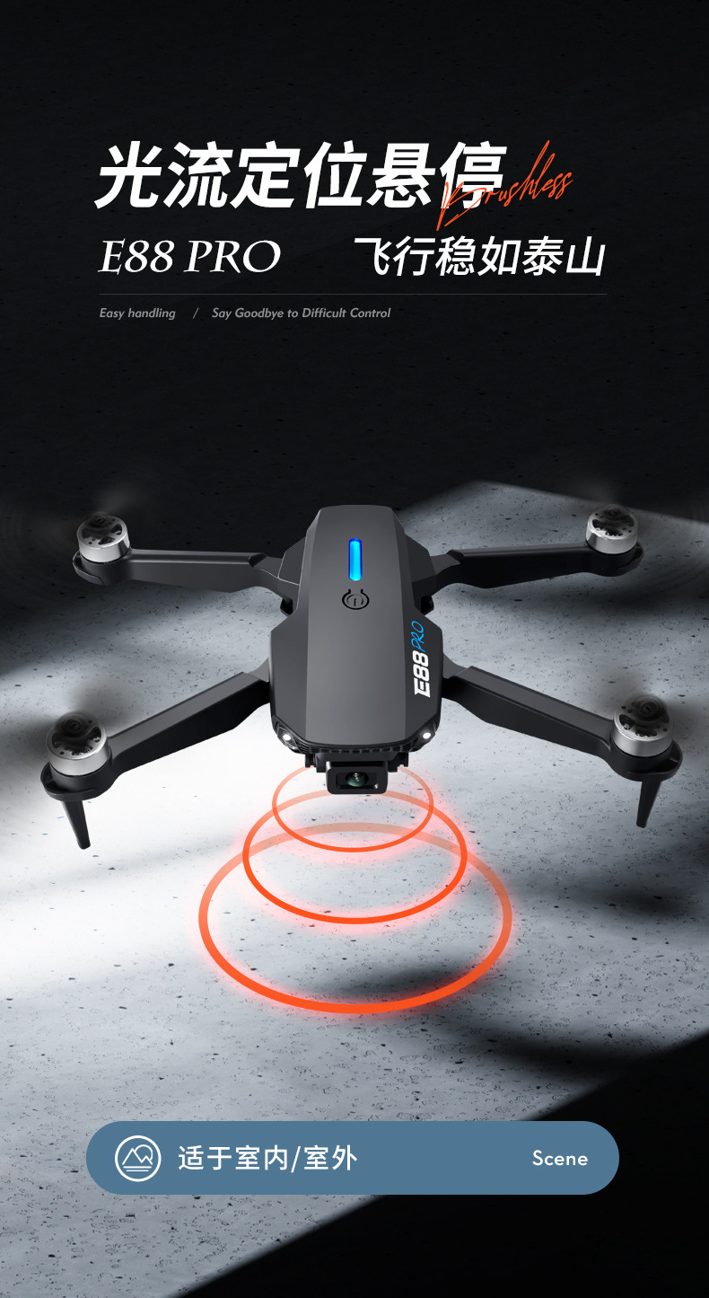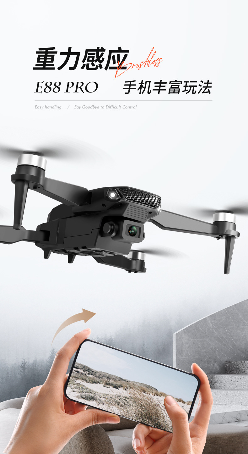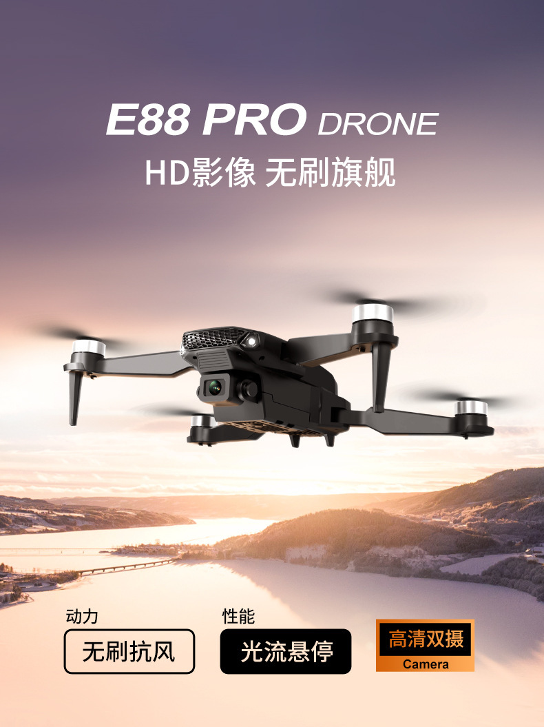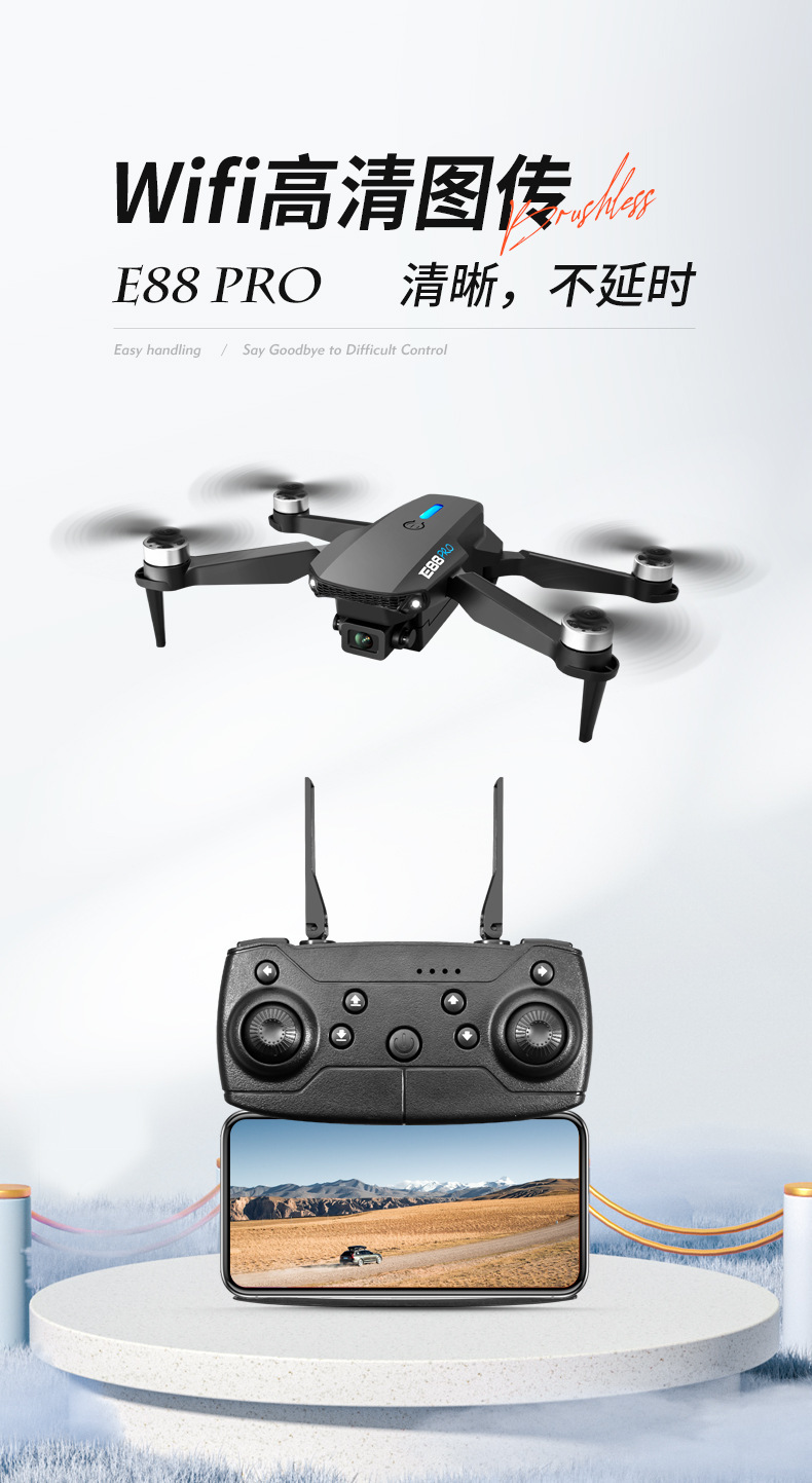 국경 간 E88 브러시리스 드론 HD 항공 사진 8k 긴 내구성 쿼드 콥터 어린이 장난감 원격 제어 항공기스토어 가기