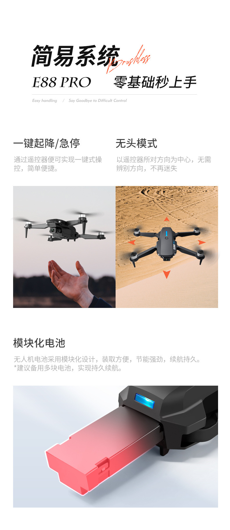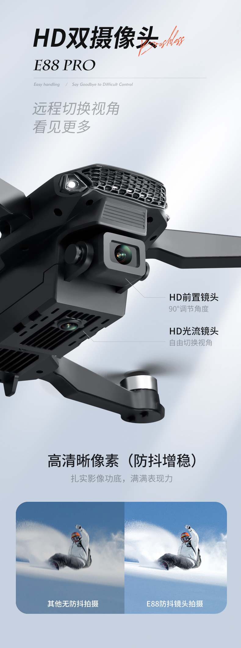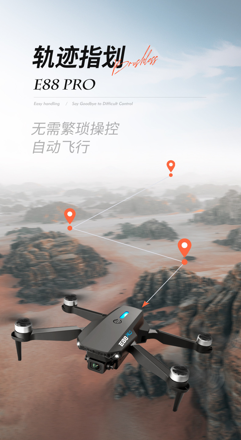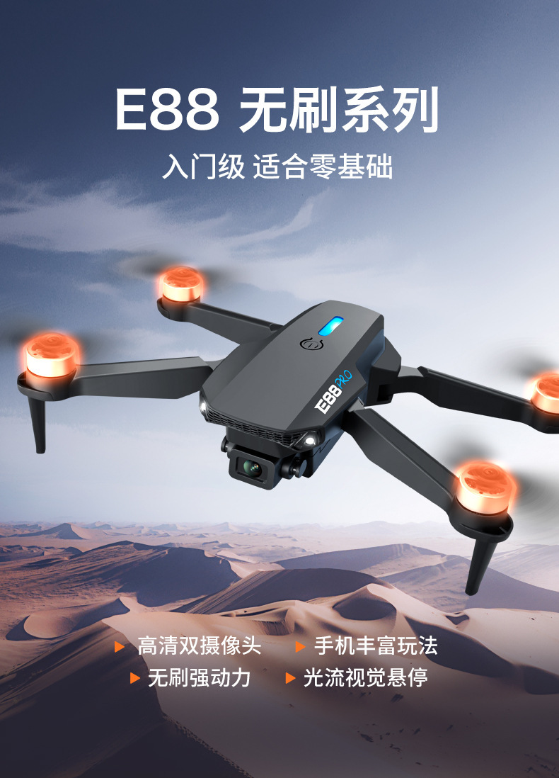 국경 간 E88 브러시리스 드론 HD 항공 사진 8k 긴 내구성 쿼드 콥터 어린이 장난감 원격 제어 항공기스토어 가기
