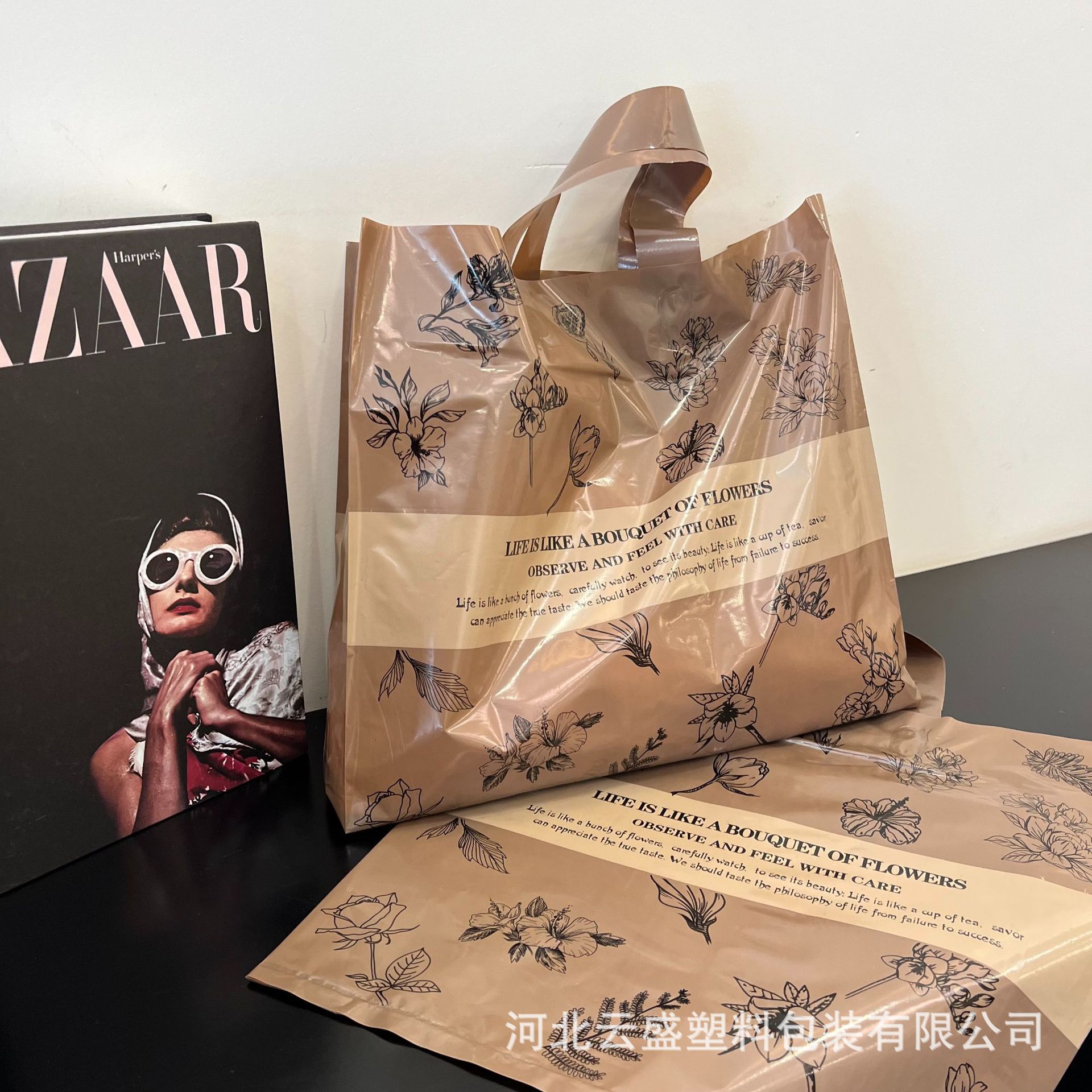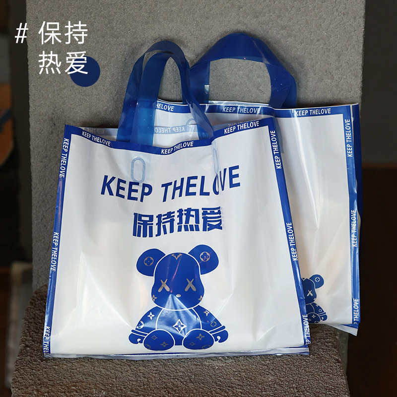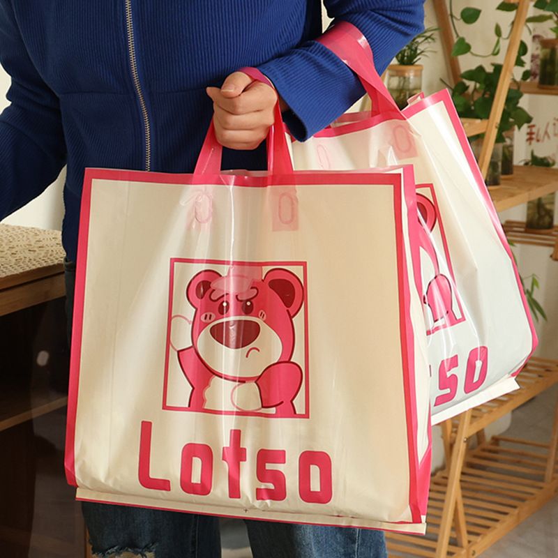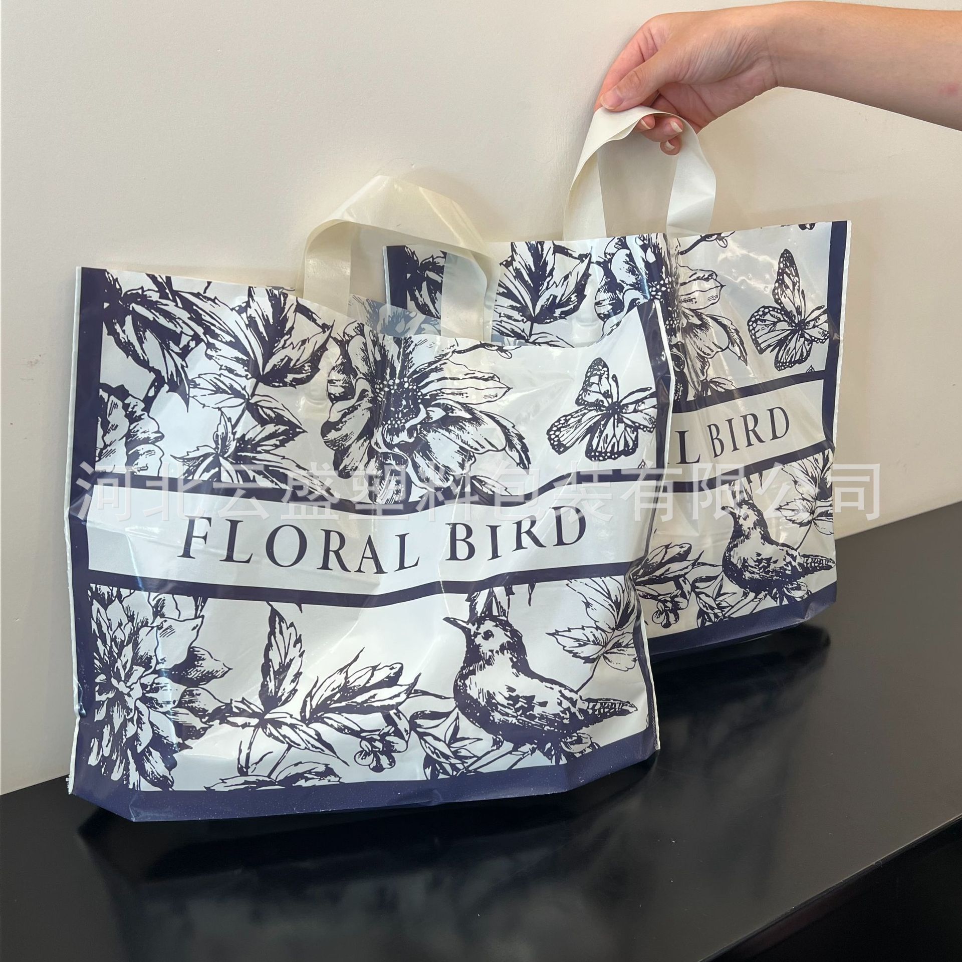 국경 간 의류 토트 백 인쇄 로고 패션 인쇄 두꺼운 쇼핑몰 의류 매장 플라스틱 토트 백 사용자 정의