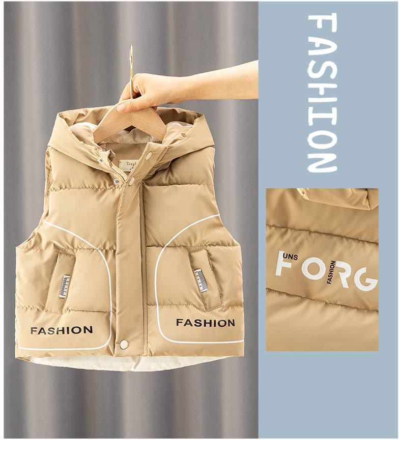 2024 년 새 어린이 조끼 가을과 겨울 옷 아기 면화 조끼 남자 아기의 후드 웨이스트 코트 따뜻한스토어 가기